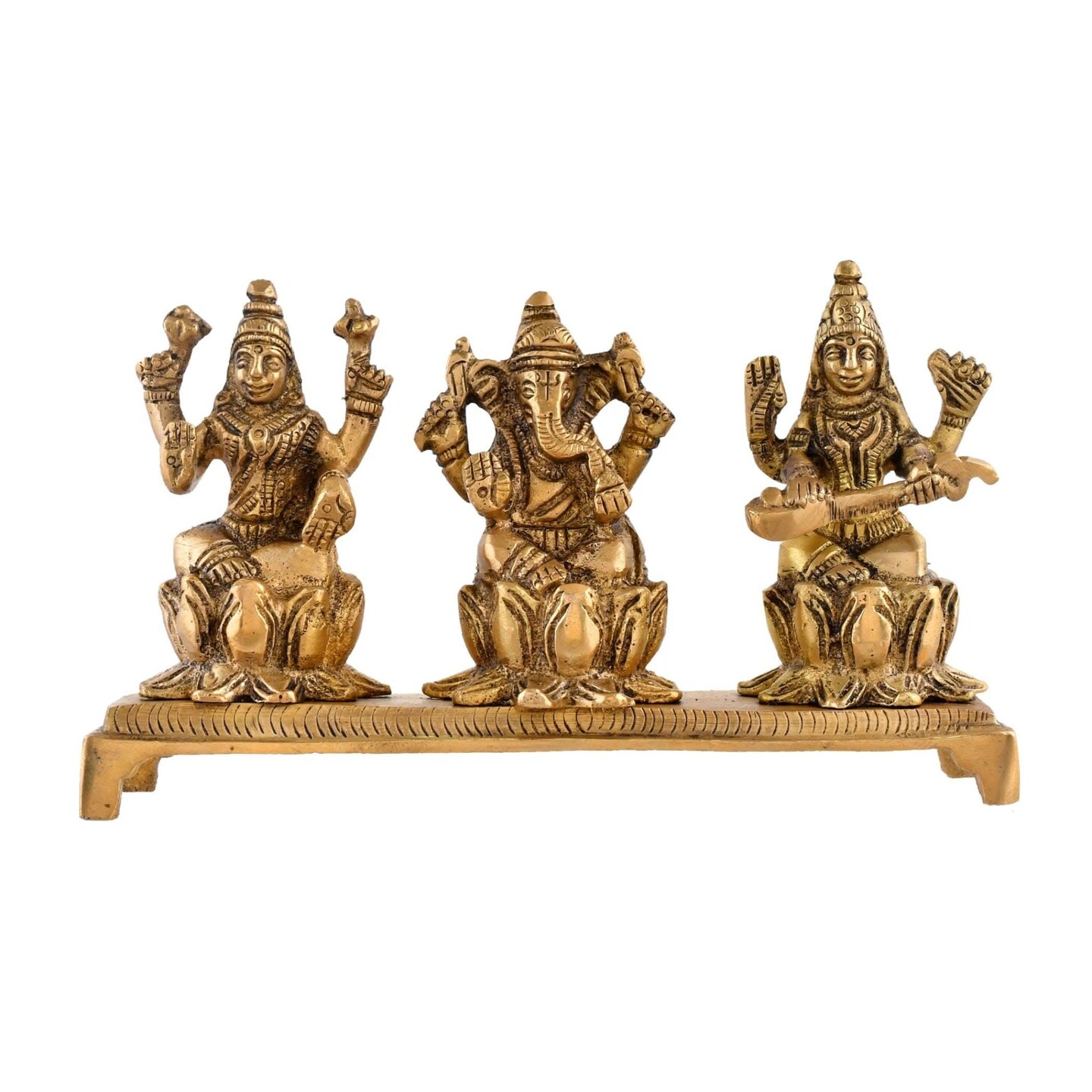 Laxmi Ganesh Saraswati Statue Brass Religious Figurine Hindu God Ganesha and Goddess Lakshmi Saraswati Idol Murti for Puja Room Home Temple Mandir Decor - Diwali Housewarming Gift (3 Inch)