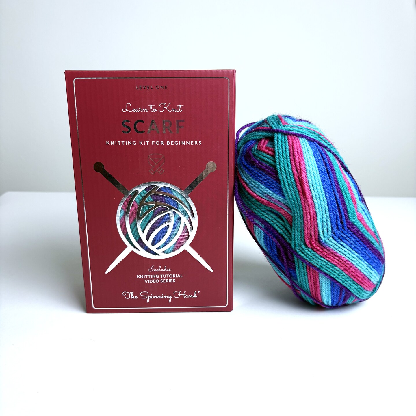 Learn to Knit Scarf Kit with Yarn, Needles & Step-by-Step Video Tutorials (Tie Dye)