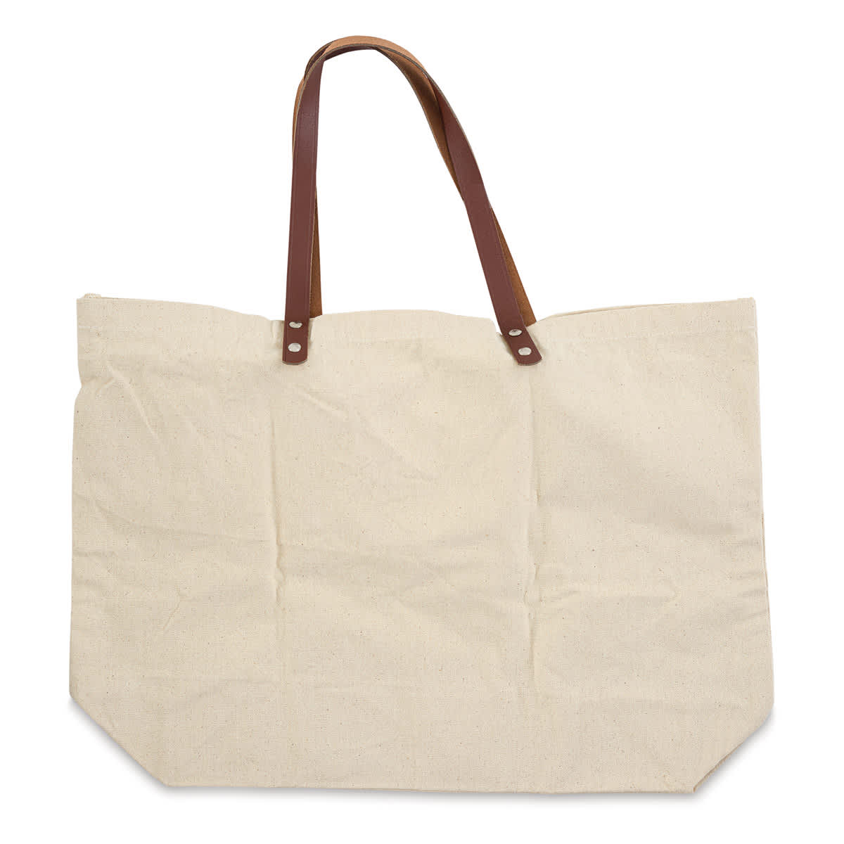 Leather Handle Canvas Tote - Natural, 20" x 15" x 5"