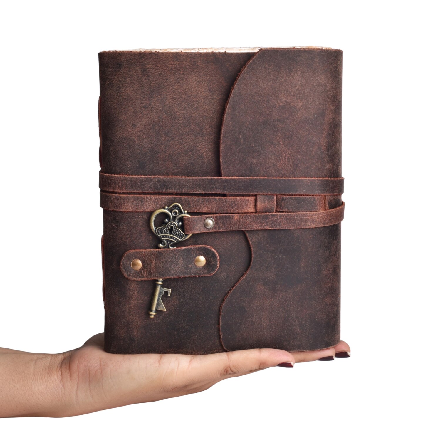 LEATHER VILLAGE Leather Journal – 200 Handmade Vintage Deckle Edge Paper – Leather bound Journal For Women Men- Vintage Key Closure - Book of Shadows - 6X4 inches (A6) - Fuchsia