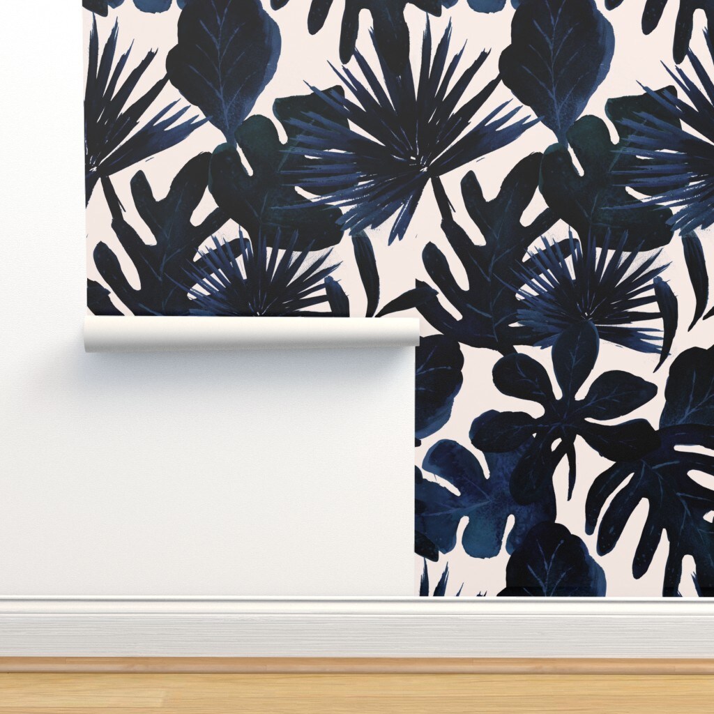 Leaves Tropical Baby Jungle Blush Midnight Palm Monstera Custom Removable Wallpaper by Spoonflower Peel & Stick Wallpaper 2FT Wide