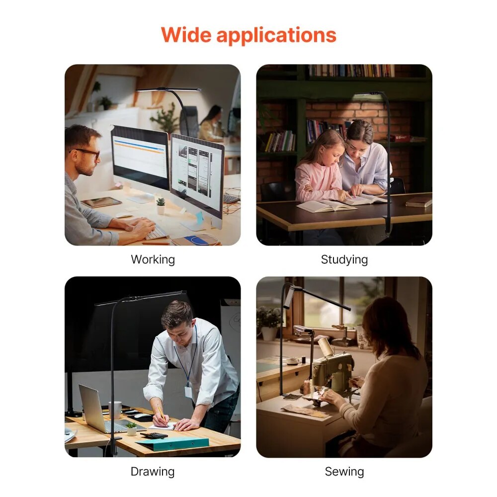 LED Desk Lamp with Clamp Double Head Adjustable Gooseneck 50 Lighting Modes Timer