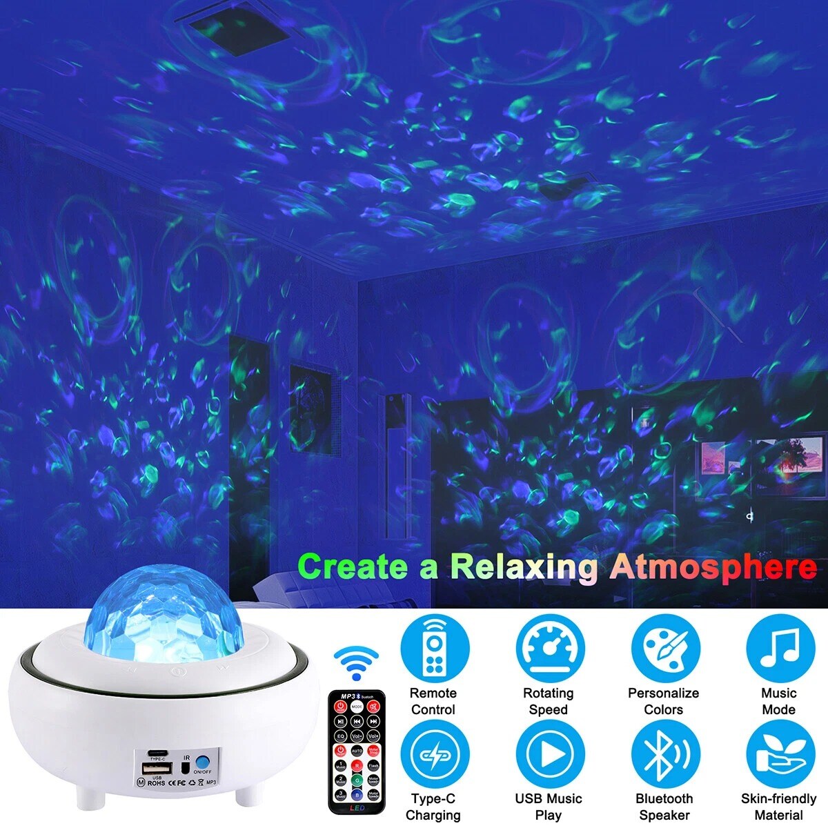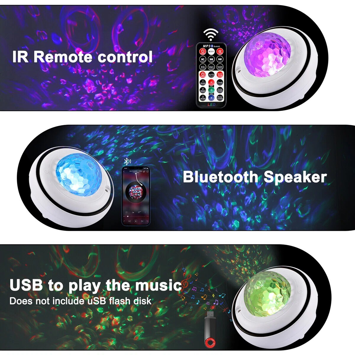 LED Galaxy Starry Projector Ocean Star Sky KTV Party Speaker Strobe Light+Remote