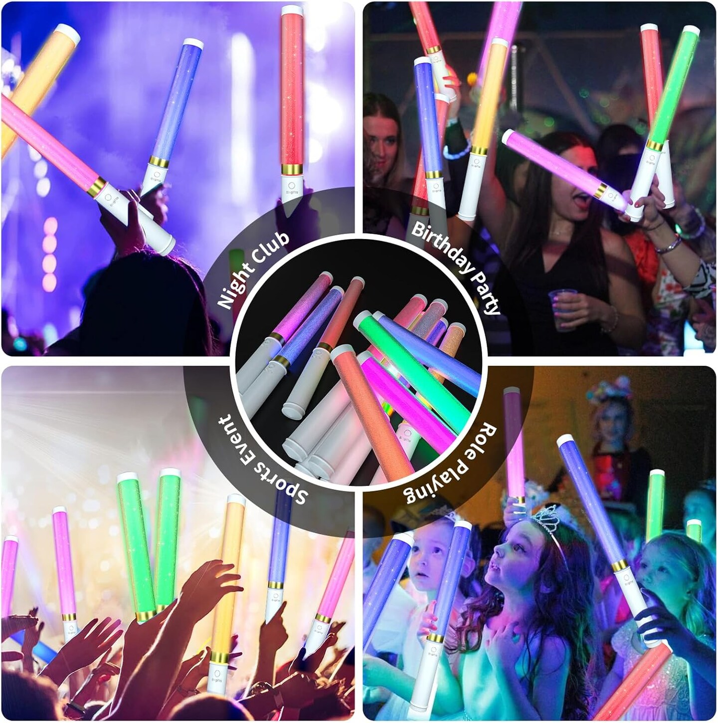 LED Glow Sticks 2 Pack, Reusable Light Up Toys 15 Colors Light Stick Bulk, Glow Party Supplies for Wedding, Birthday, Raves, Concert, Camping, New Year, Halloween, Christmas (with AAA Battery)