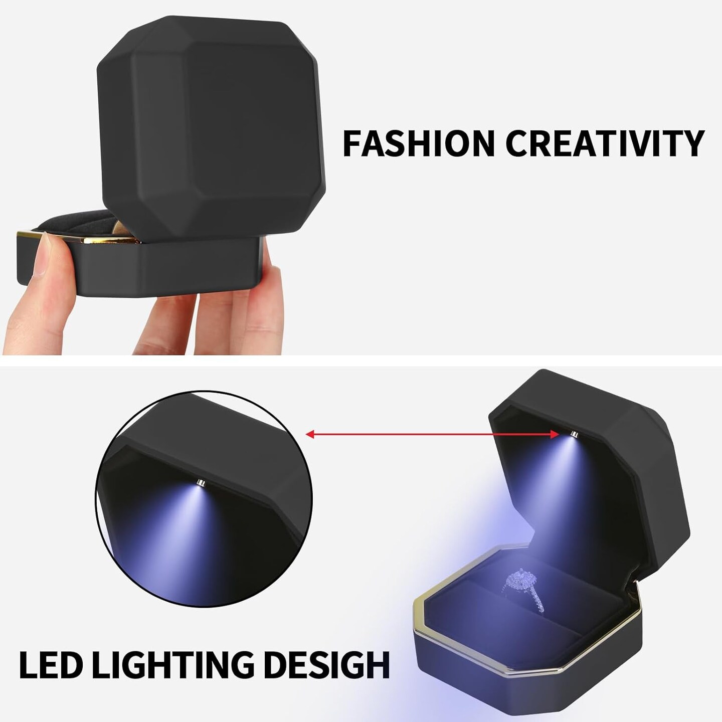 LED Jewelry Ring Box, Velvet Ring Gift Box Storage Case Organizer Holder for Proposal Engagement Wedding Anniversary Birthday Ceremony (Black)