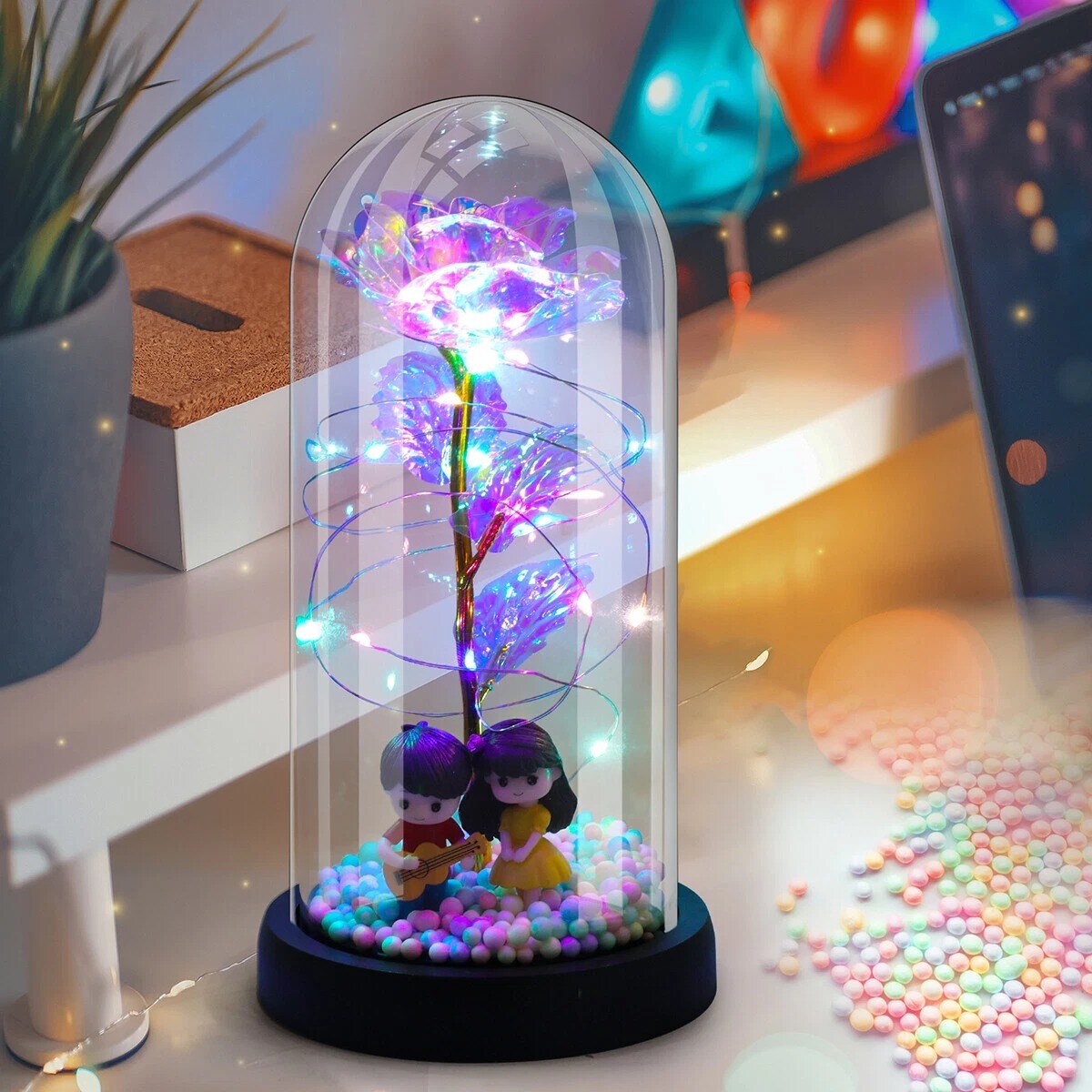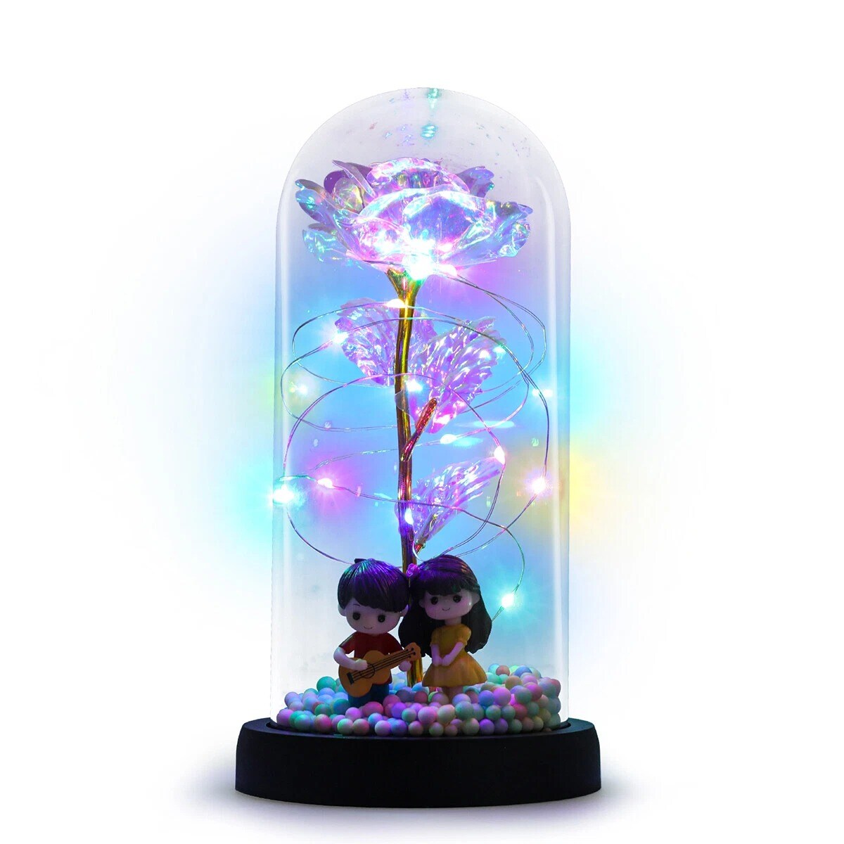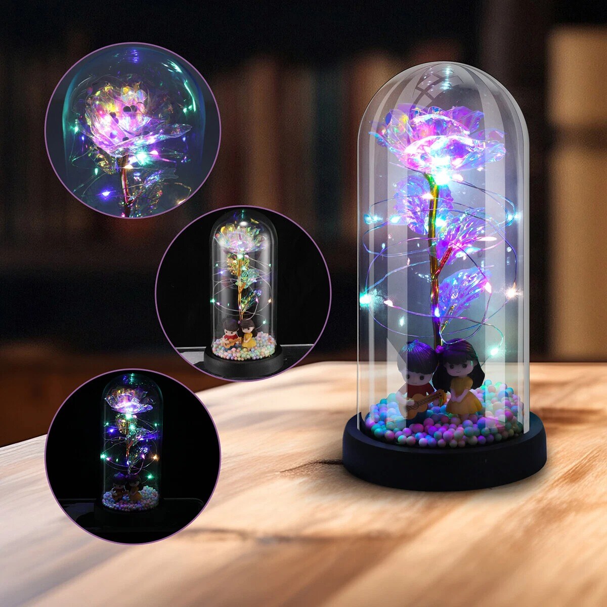 LED Rose Flower in Glass Dome Romantic Gift for Her