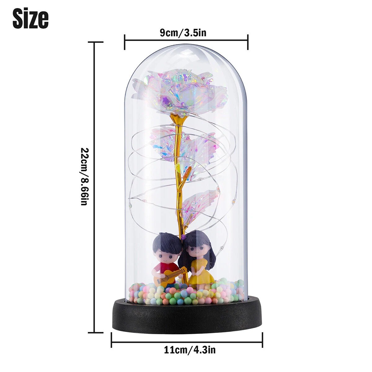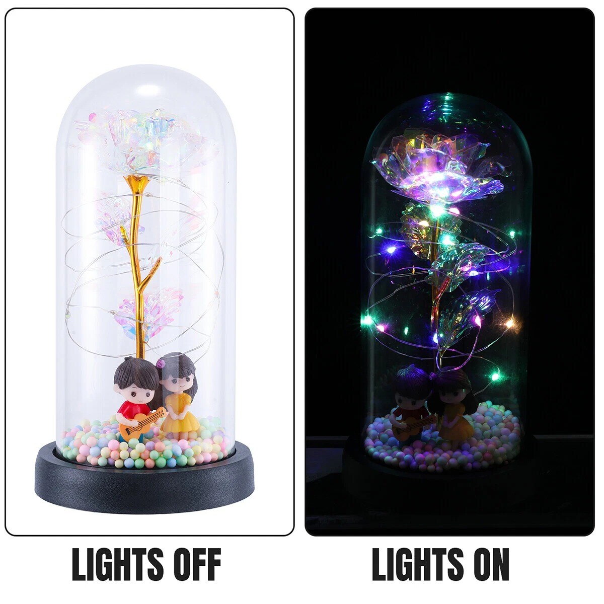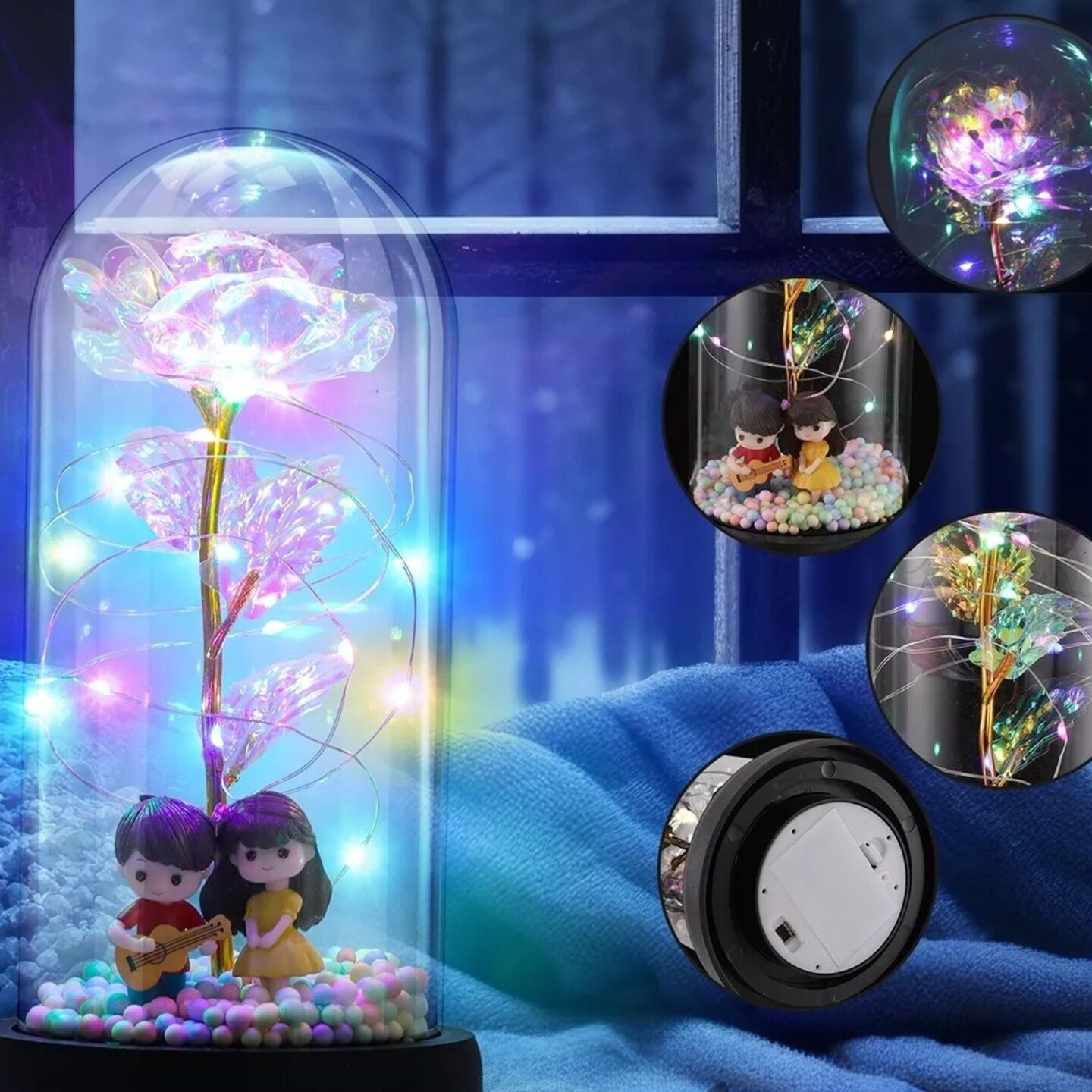 LED Rose Flower in Glass Dome Romantic Gift for Her