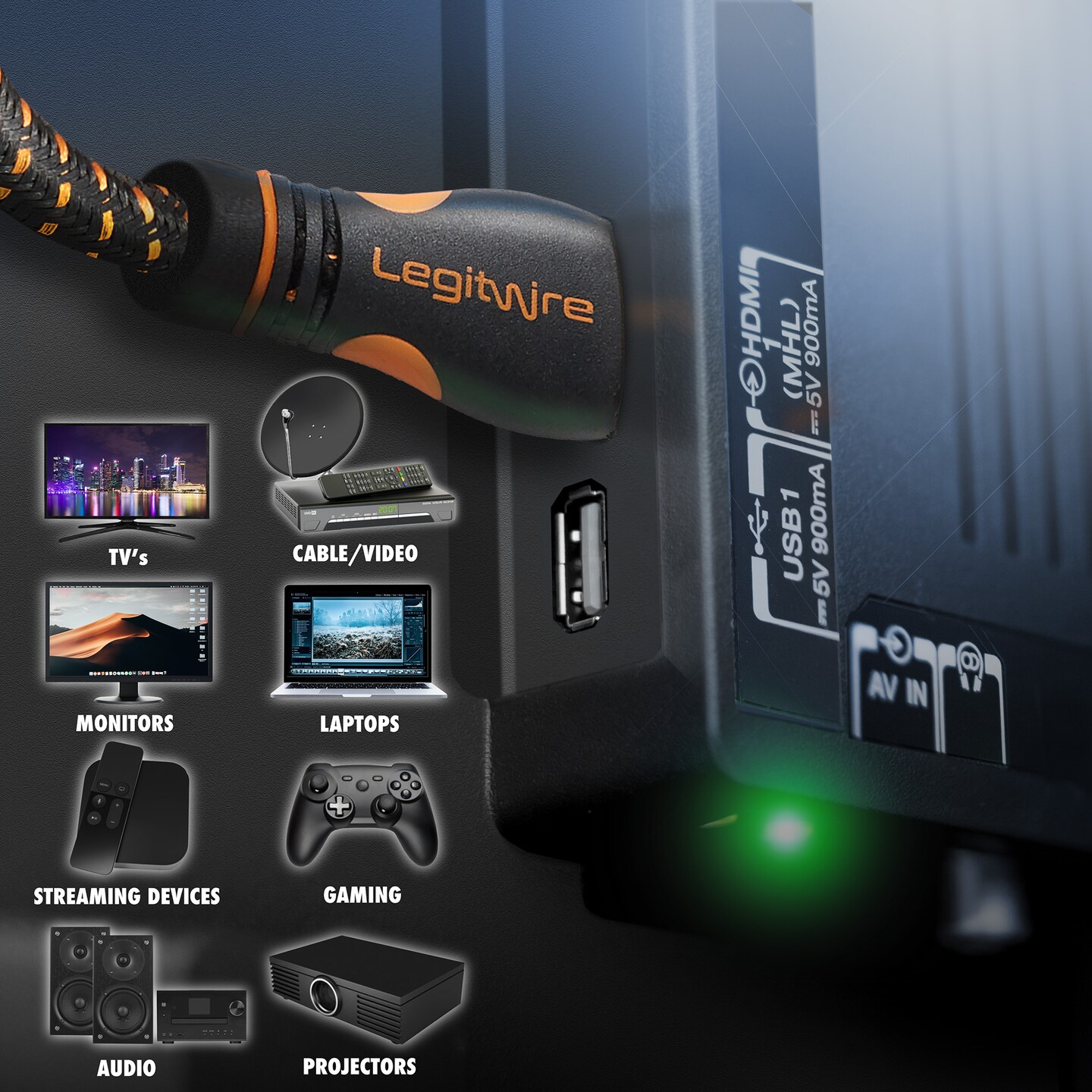LegitWire 10 ft 4K High Speed HDMI Cables - 18Gbps HDMI 2.0 (4K @ 60hz HDR UHD 4:4:4 Chroma) - Ethernet - Locking Head - Deep Color Ultra HD with ARC, 3D, HDCP 2.2, 28AWG, Gold Plated