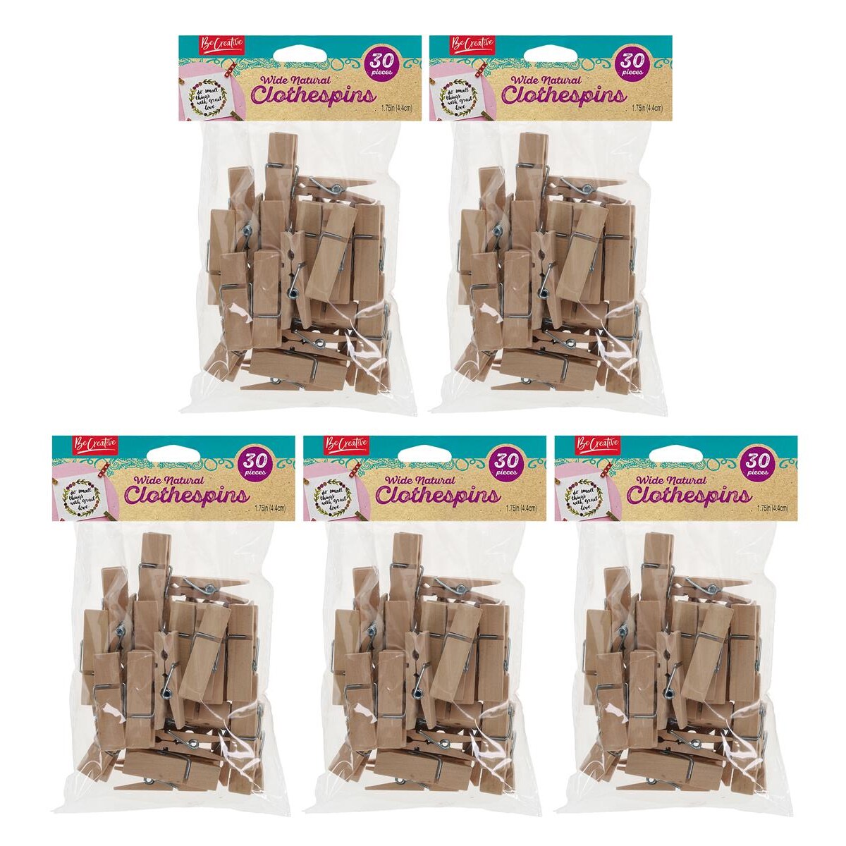 Leisure Arts Bundle Wood Clothespins 1.75" Natural, 5Pk Of 10Pc - Perfect For Diy, Crafting, And Photos, Small Clothes Pins & Small Clothespins For Photos, Home Decor & More