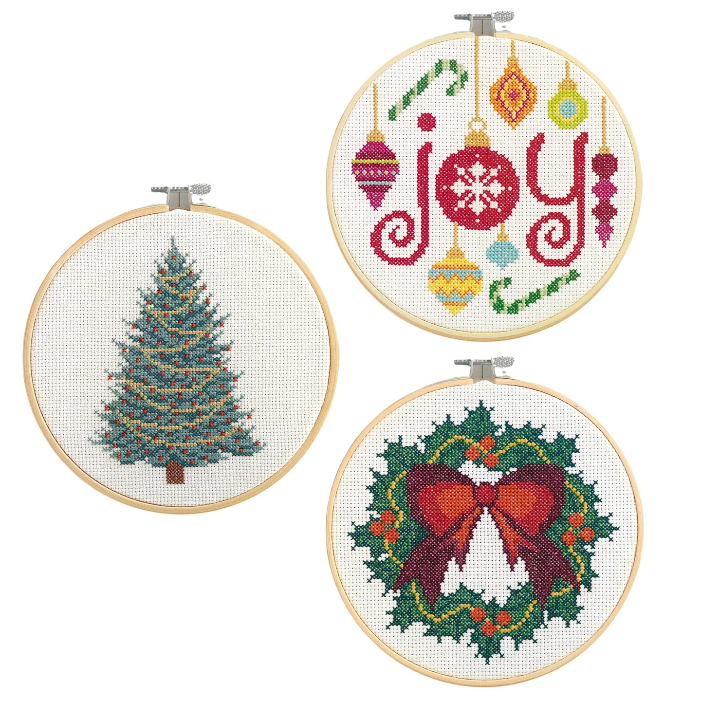 Leisure Arts Cross Stitch Kit 6" Christmas 3pc Set