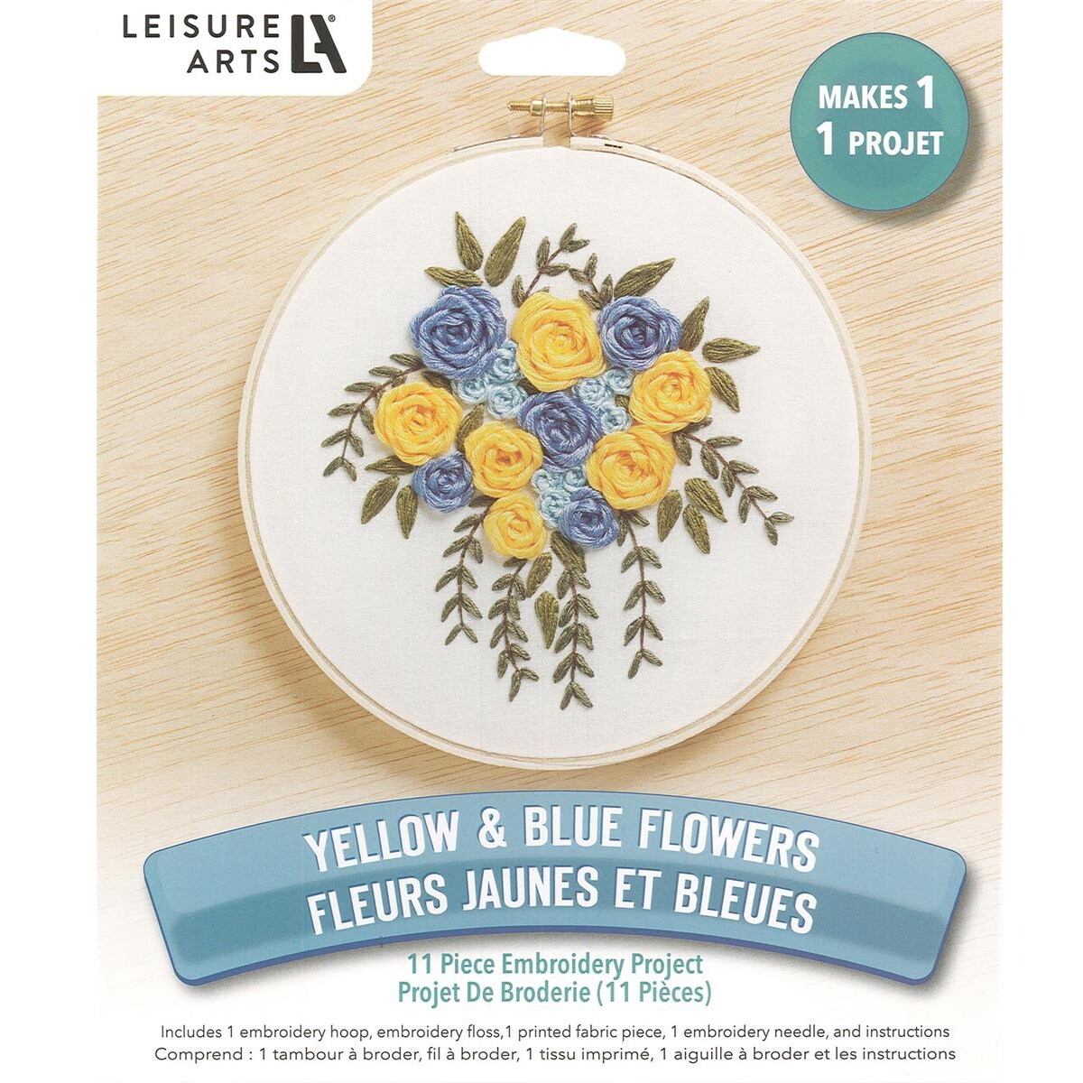Leisure Arts Embroidery Kit 6" Yellow & Blue Flowers - Embroidery Kit For Beginners - For Adults Cross Stitch Kits Cross Stitch Kits Beginners Patterns