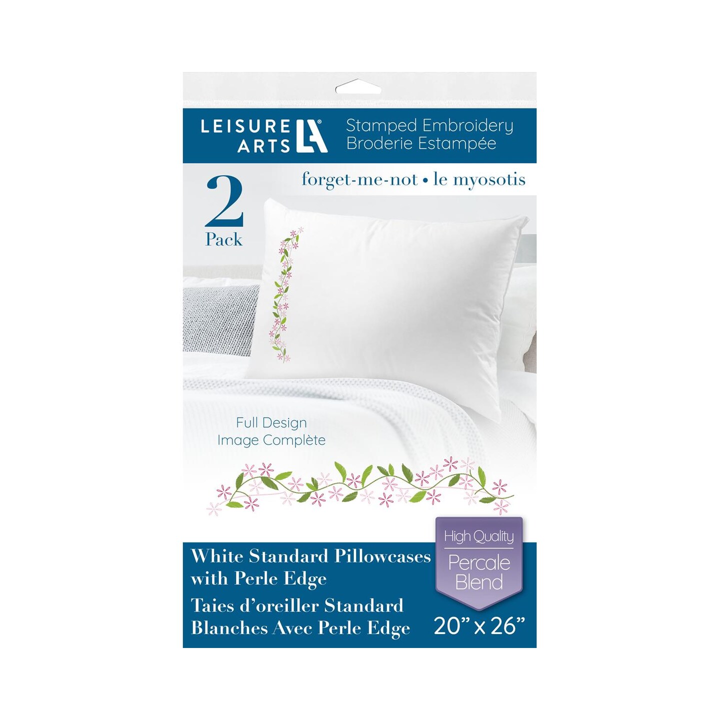 Leisure Arts Pillowcase 20"X26" Forget-Me-Not 2Pc, Embroidery Pillow Kit, Stamped Embroidery Pillowcases, Pillow Cases Stamped, Stamped Cross Stitch Cases