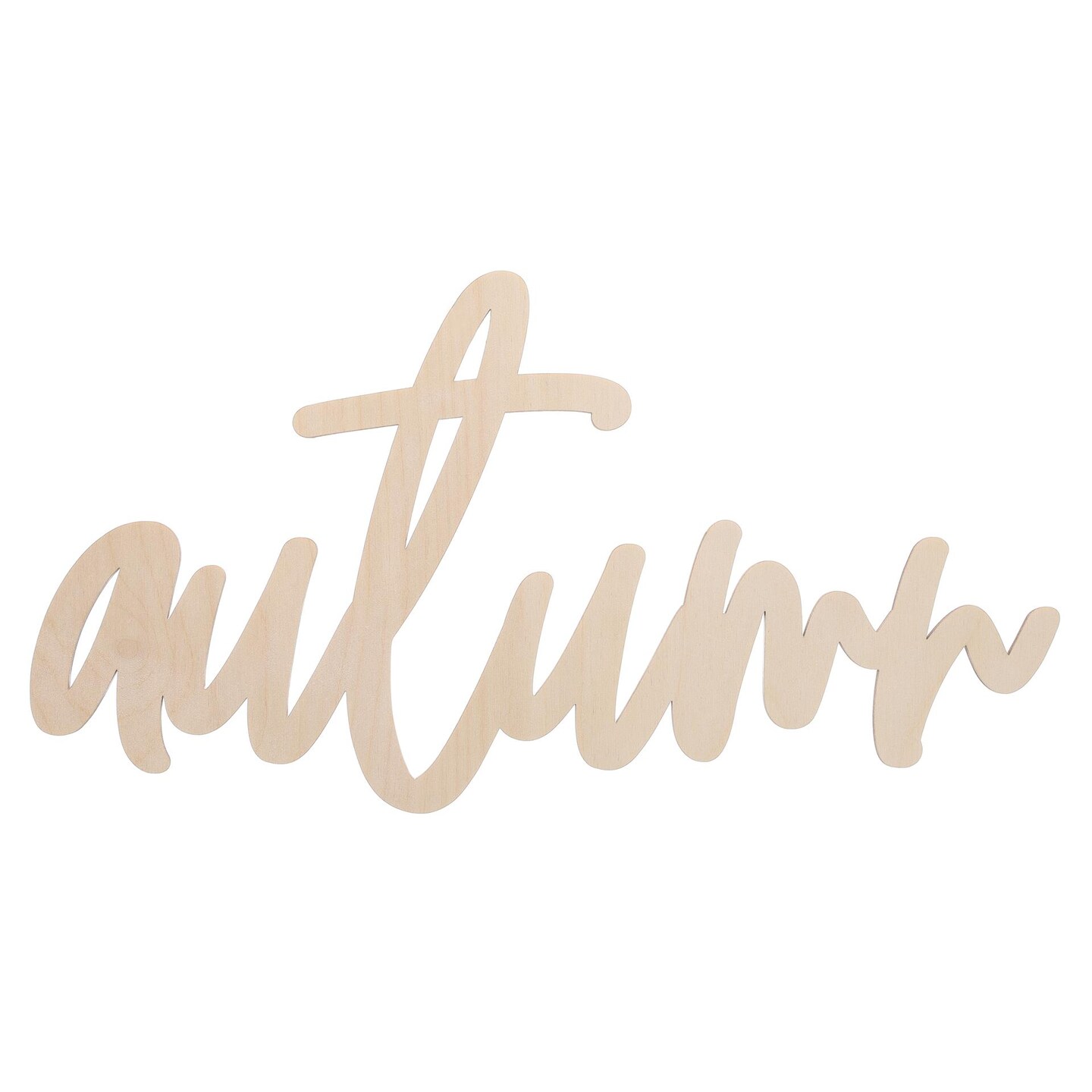 Leisure Arts Wood Word Cutout ‘Autumn’ Large 14.5"x7.75" – Unfinished Wooden Words for Crafts, Rustic Decor, Painting Projects, and Home Art Displays