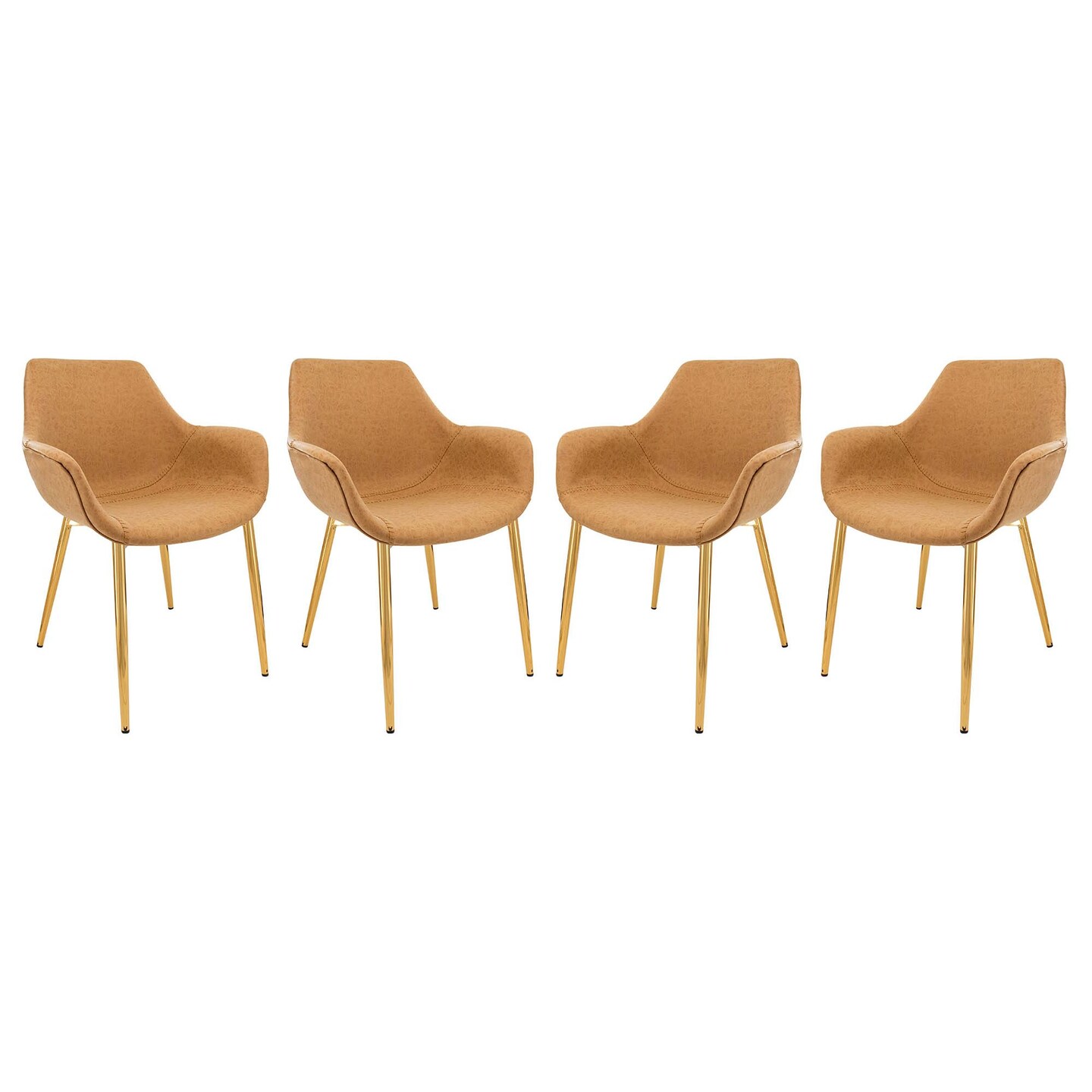 LeisureMod Markley Modern Leather Dining Arm Chair with Metal Legs, Set of 4