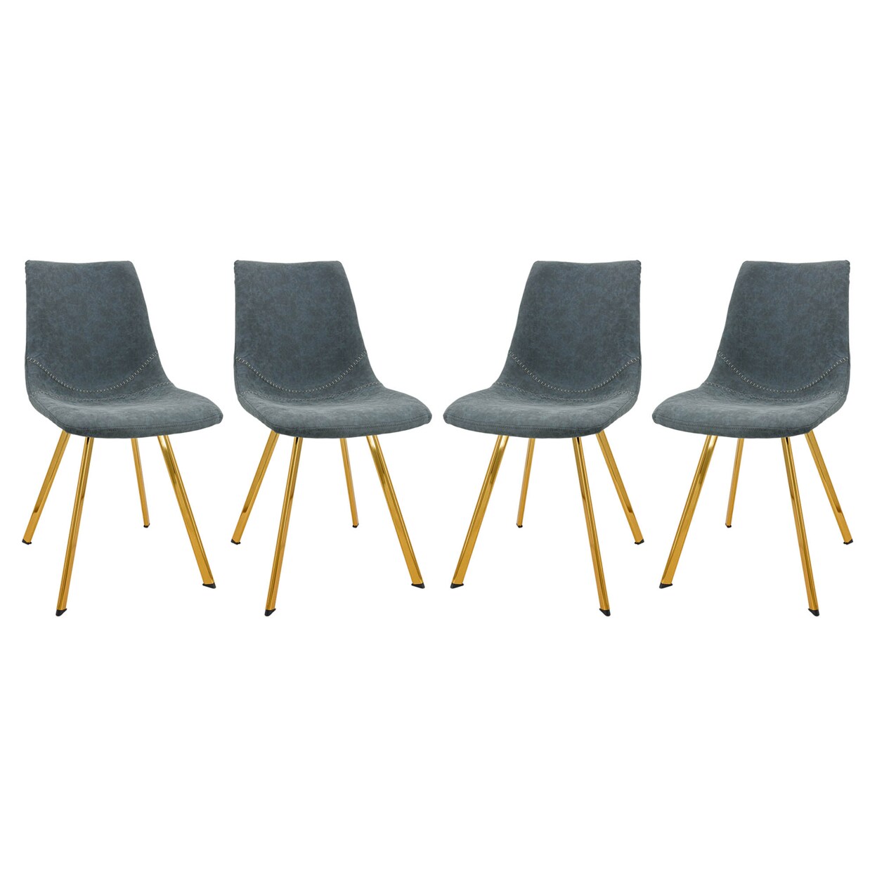 Leisuremod Markley Modern Leather Dining Chair With Gold Legs Set of 4 - Peacock Blue