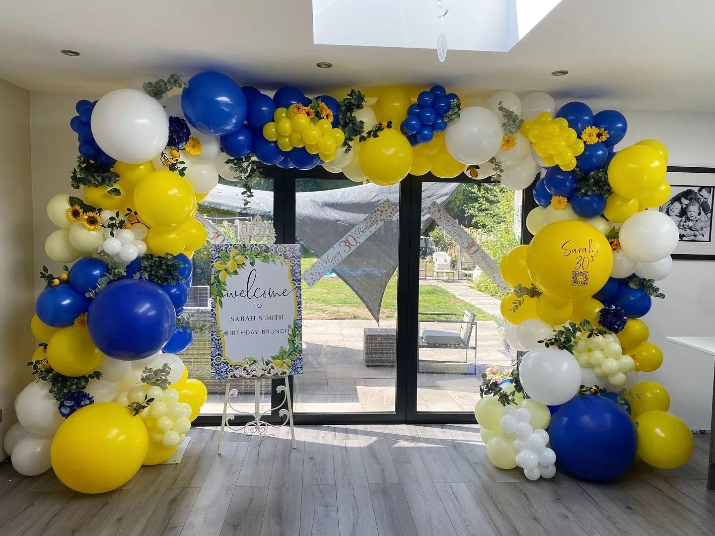 Lemon Balloon Garland Arch Kit, 153pcs Lemon Yellow Royal Blue and Dusty Blue Balloons