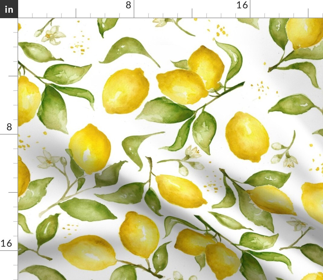 Lemon Blossoms Blossom Summer Fruit Kitchen Decor Custom Printed Fabric by Spoonflower Various Fabrics by the Yard or Fat Quarter