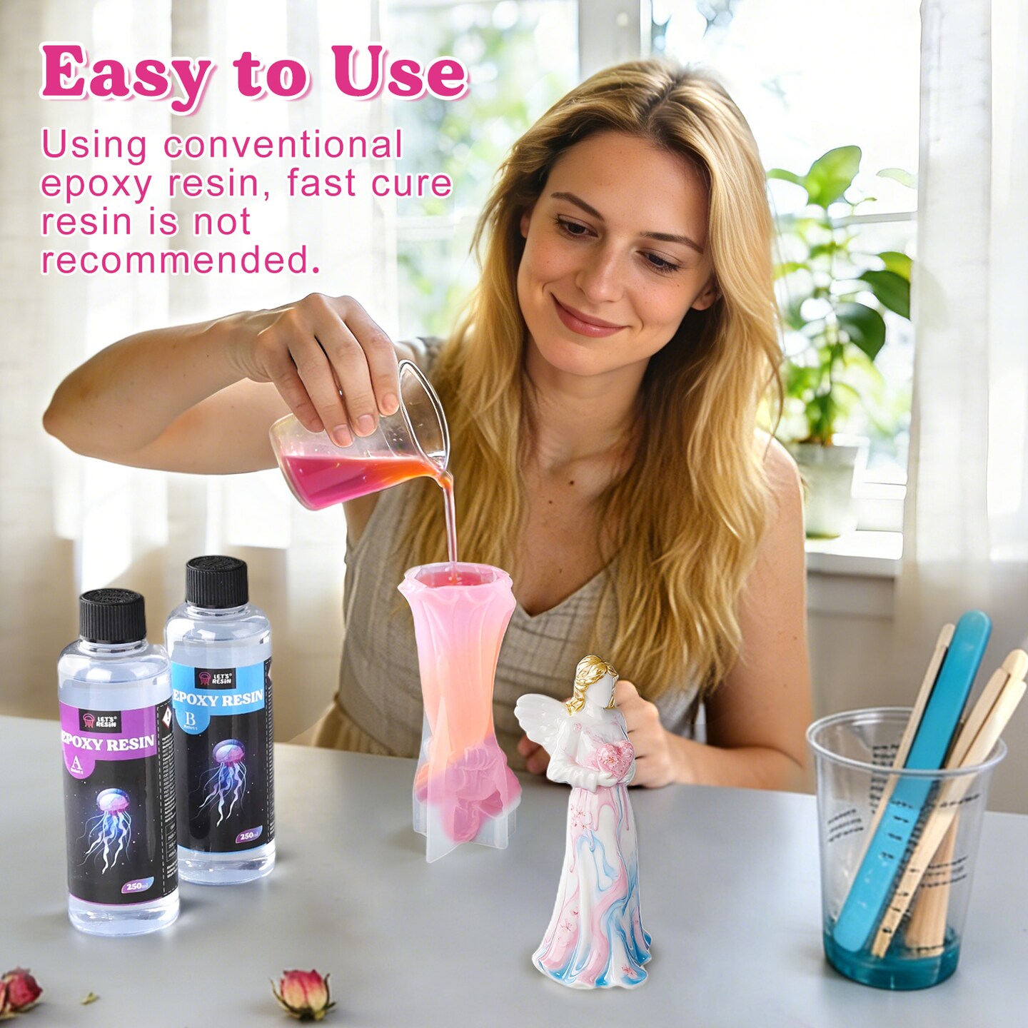 LET'S RESIN 2pcs Angel Figurines Resin Molds, Angel Silicone Molds for Preserved Flowers, DIY Resin Art, Gift for Woman-Retirement/Mother's Day