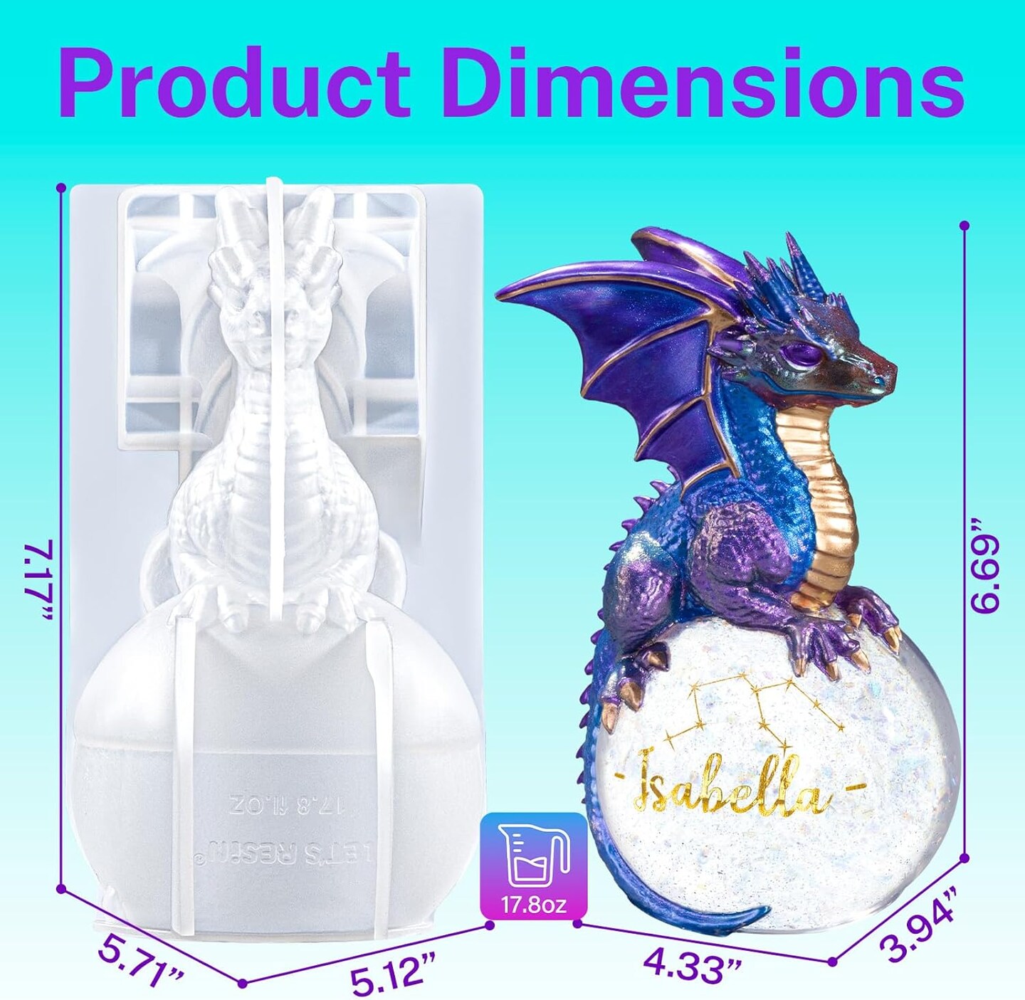 LET'S RESIN Dragon Resin Molds, Dragon Figurines Epoxy Resin Molds with Egg Base, 3D Animal Silicone Molds for Resin Crafts, DIY Home Desk Decor & Gifts