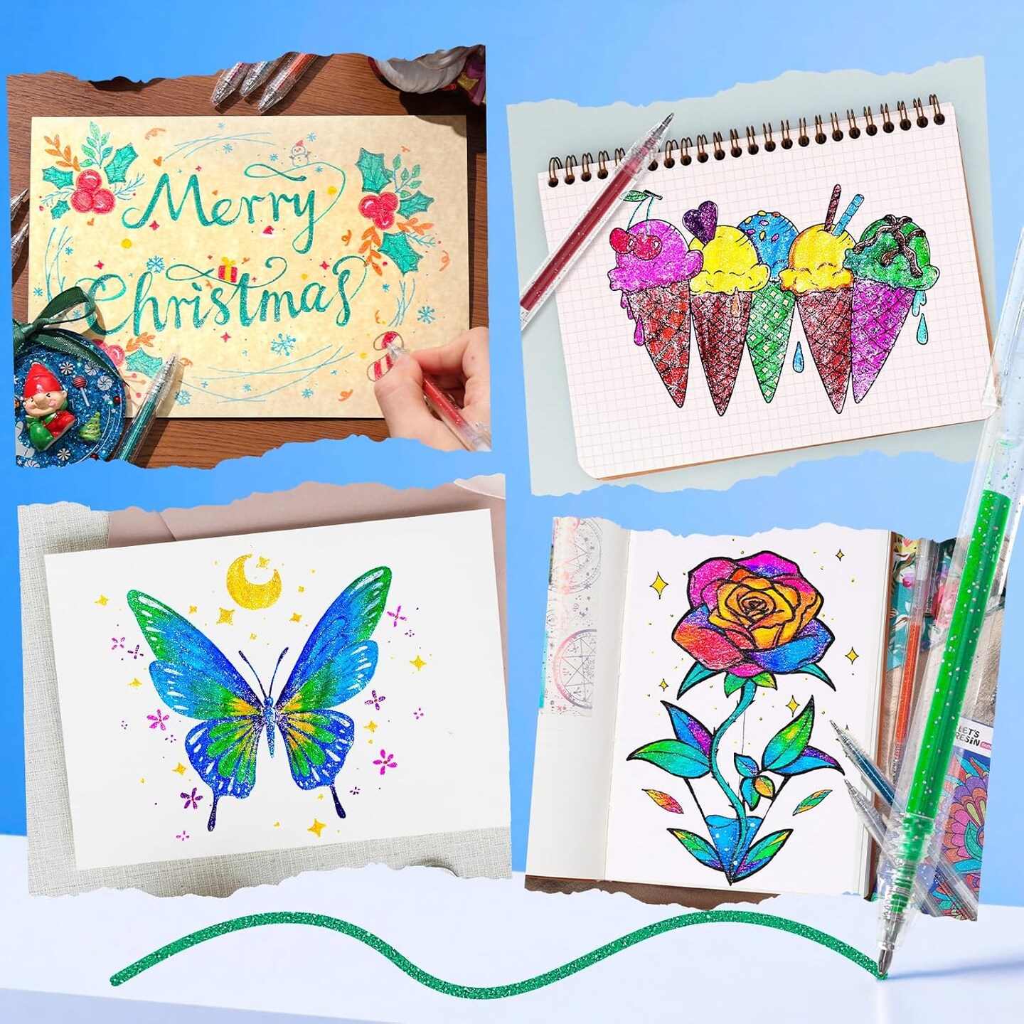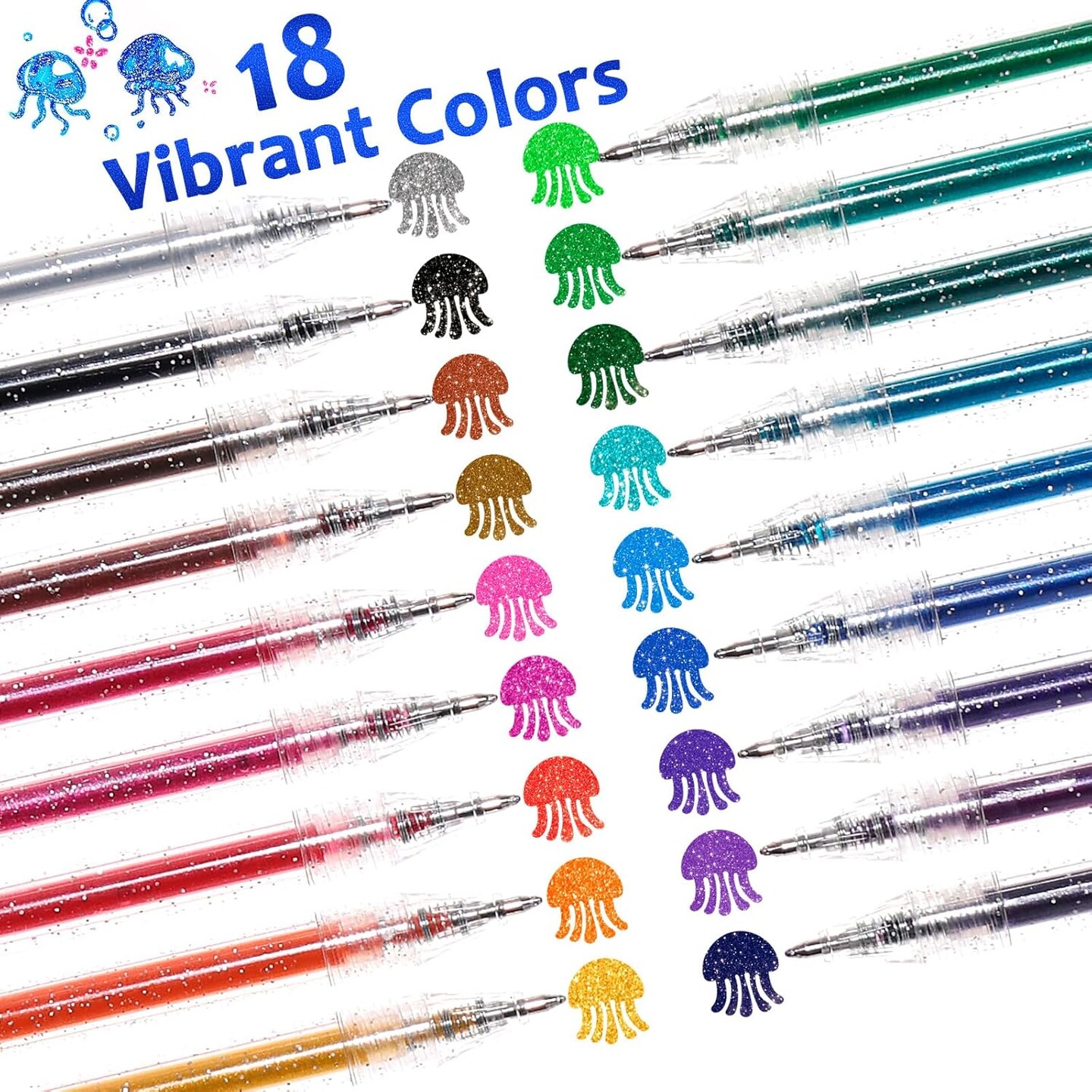 LET'S RESIN PAINT Glitter Gel Pens,18 Vibrant Colors Sparkle Gel Pen, Retractable Metallic Shimmer Pens for Adults Coloring Note Taking and Journaling Christmas Gifts Stocking Stuffers