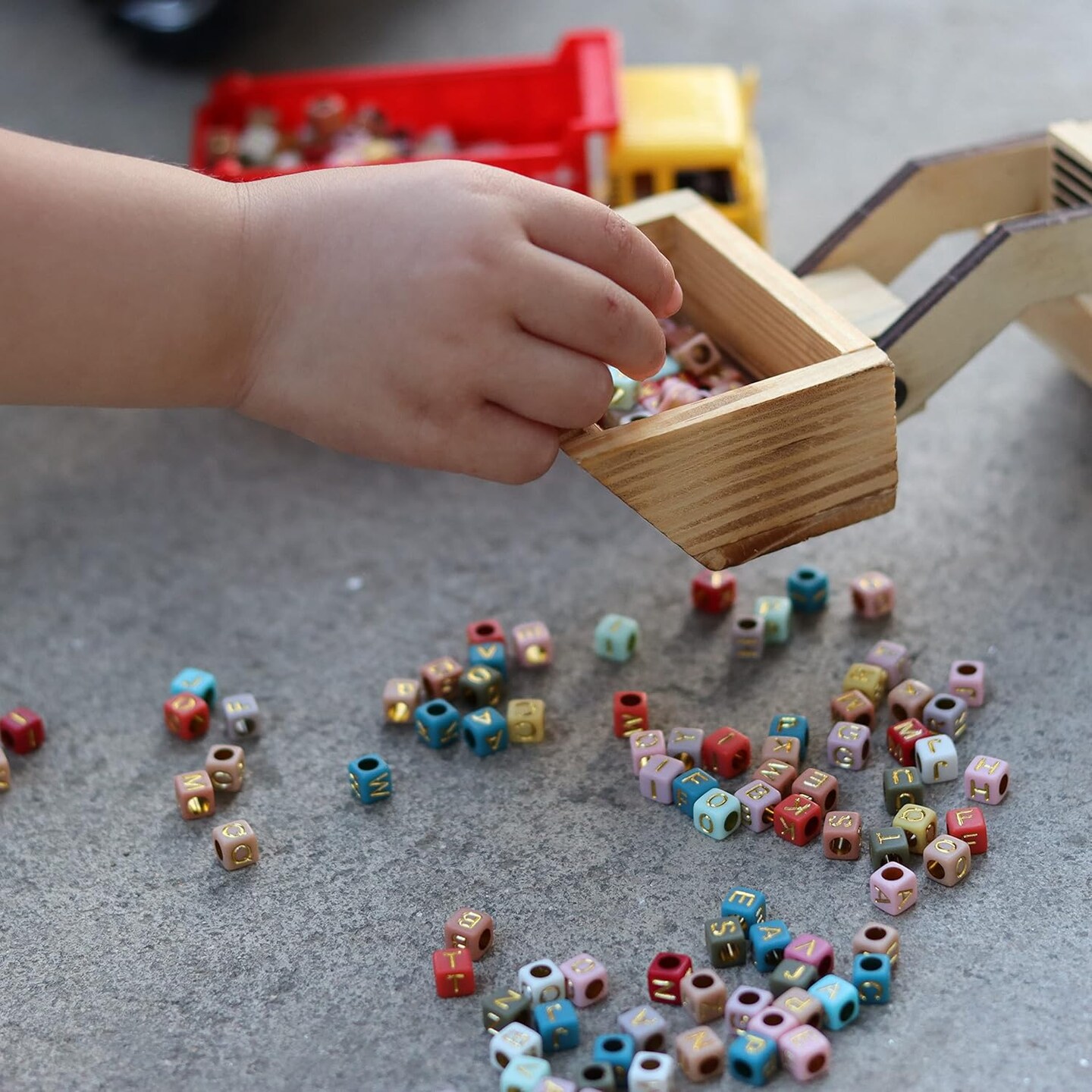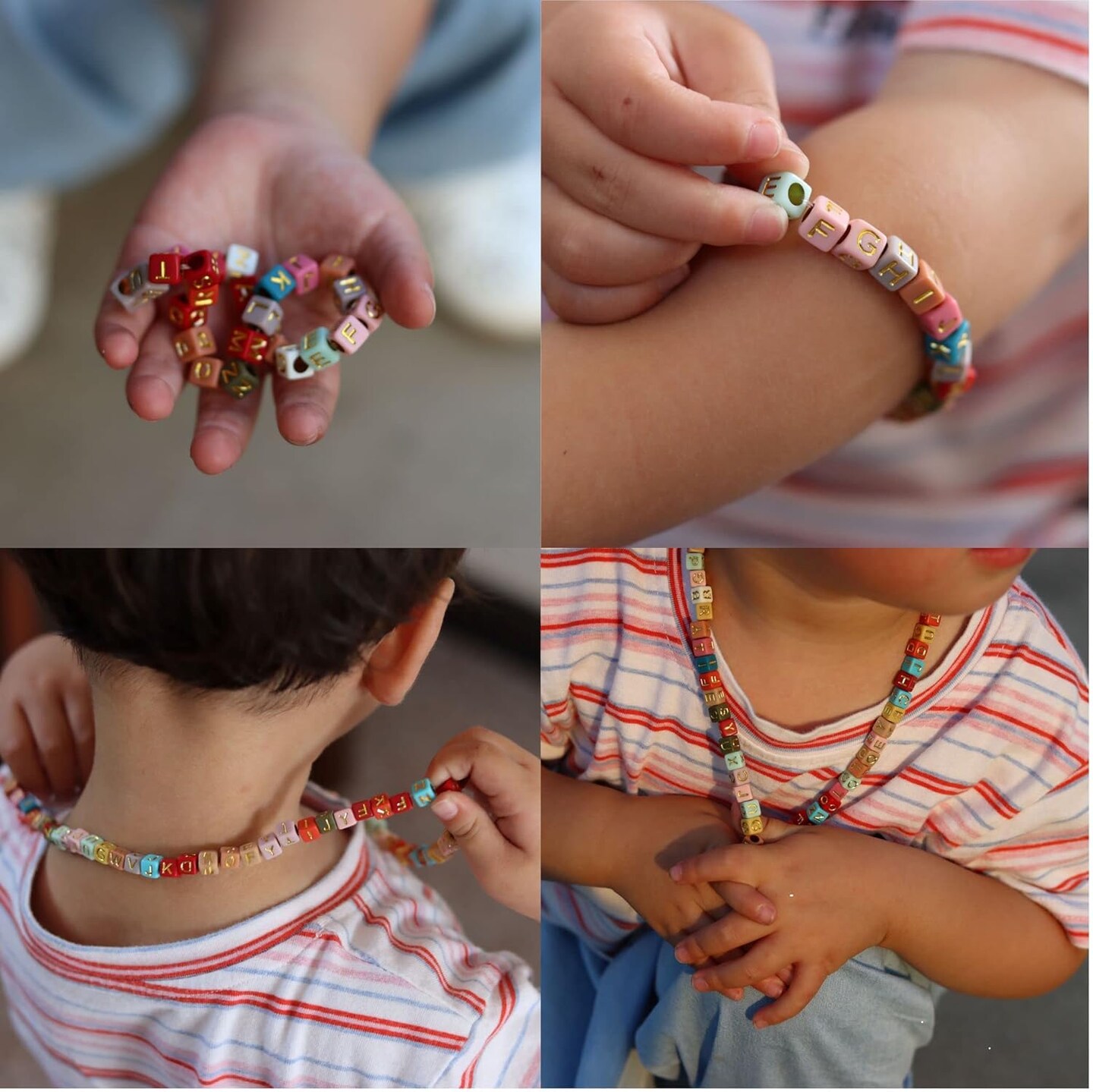 Letter Beads, Augshy 1400 Pcs Morandi Cube Alphabet Beads,Square Letter Beads with 1 Roll 10M Crystal String Cord