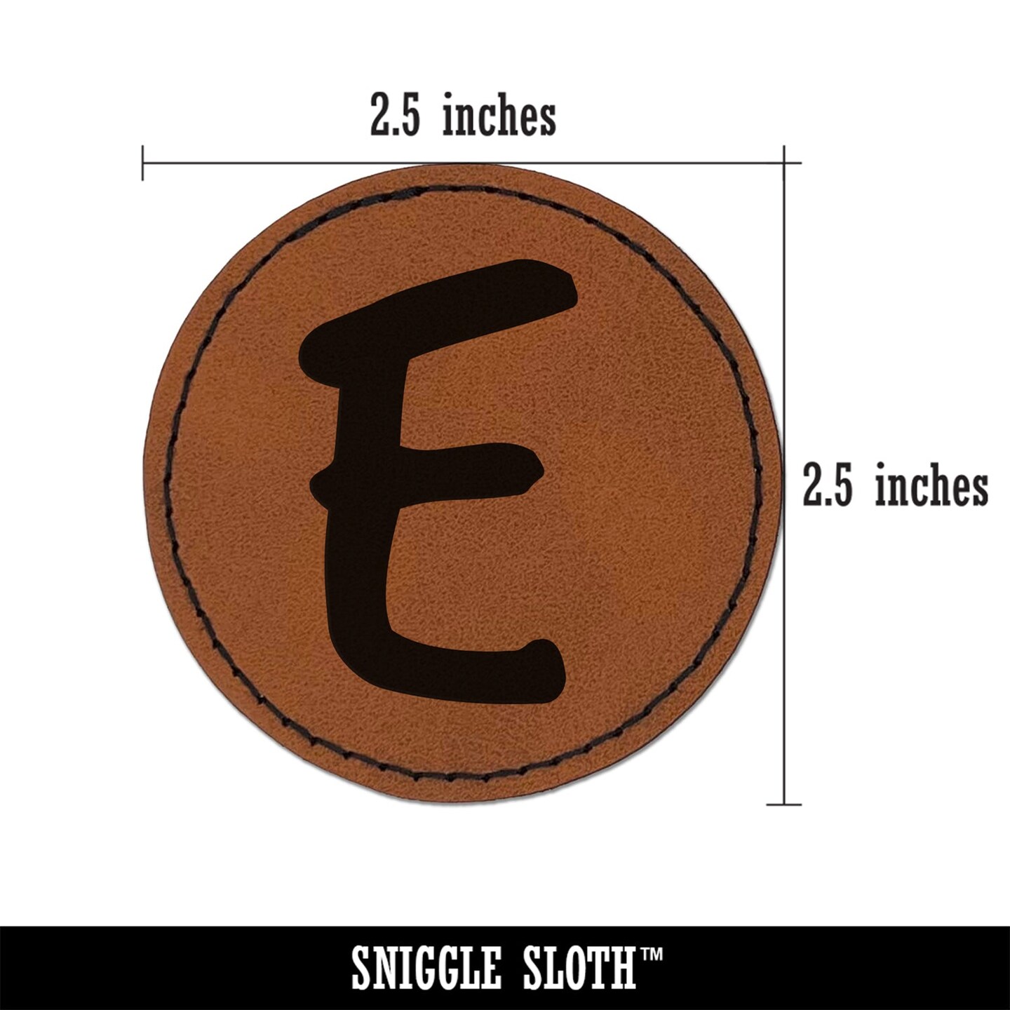 Letter E Uppercase Felt Marker Font Round Iron-On Engraved Faux Leather Patch Applique - 2.5"