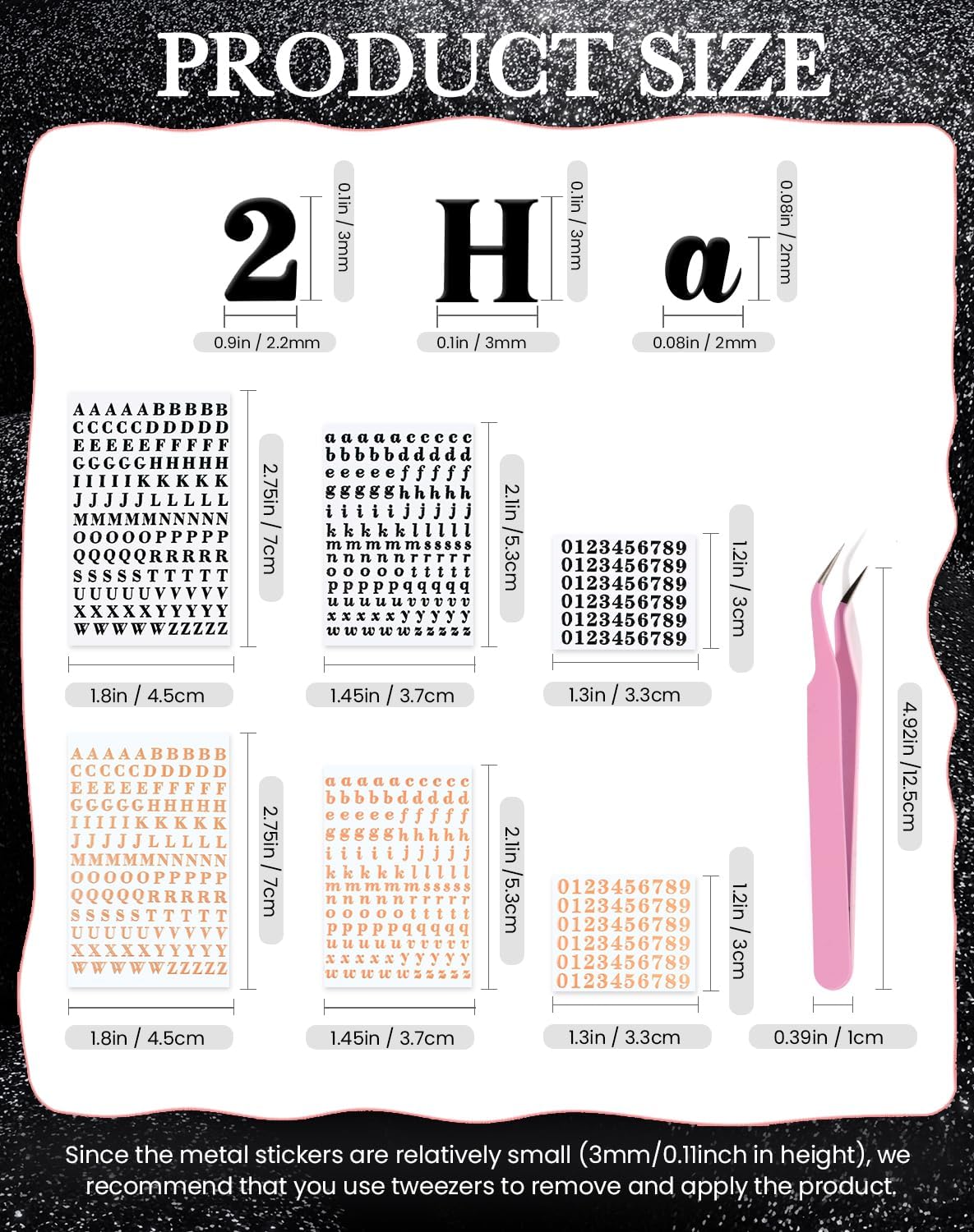 Letter Stickers 0.11inch with Tweezer Small Alphabet Decals 6 Sheets
