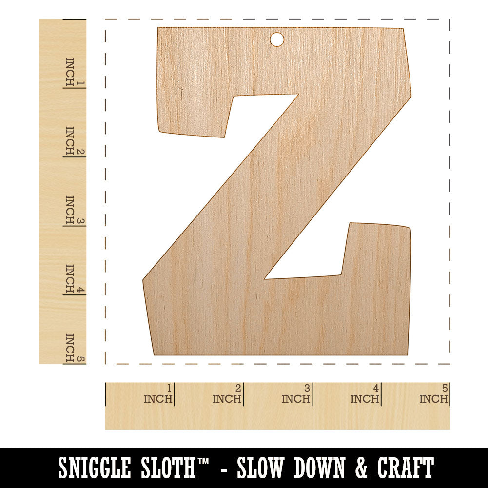 Letter Z Uppercase Fun Bold Font Unfinished Craft Wood Holiday Christmas Tree DIY Pre-Drilled Ornament