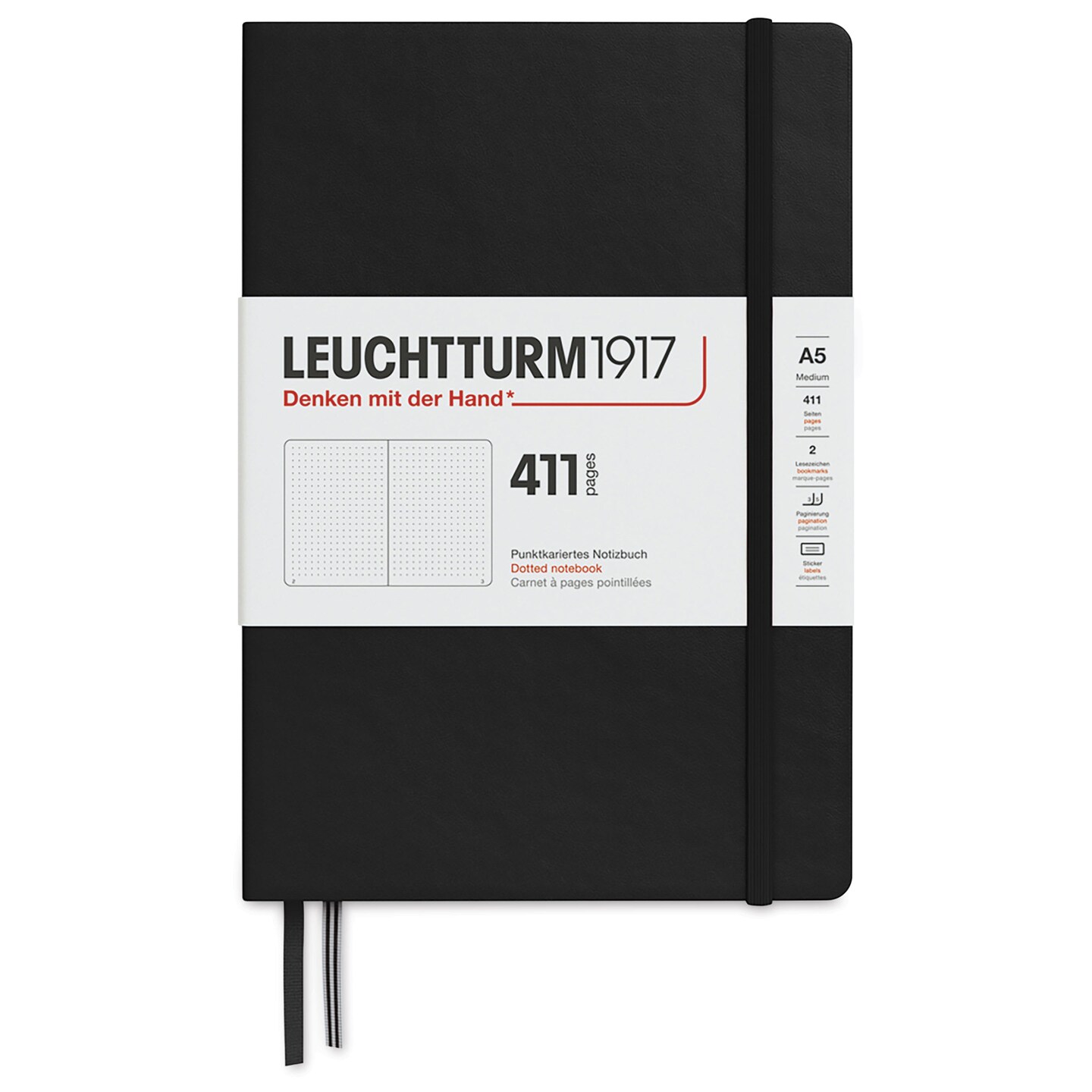 Leuchtturm1917 411 Notebook - Black, 5-3/4" x 8-1/4", Dot Grid