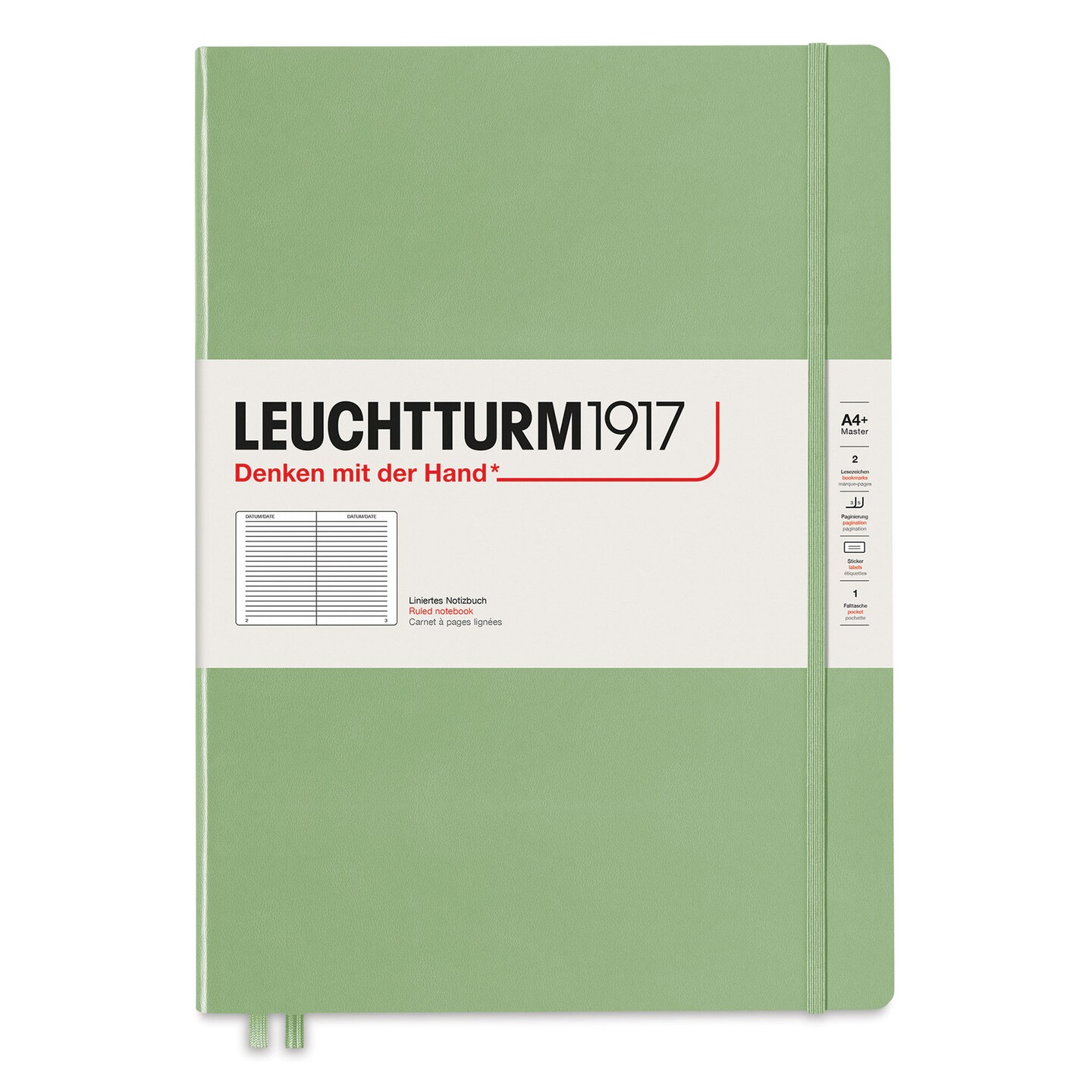 Leuchtturm1917 Ruled Hardbound Notebook - Sage, Master Slim, 8-3/4" x 12-1/2"