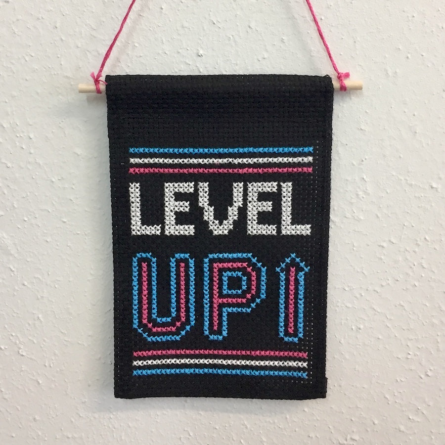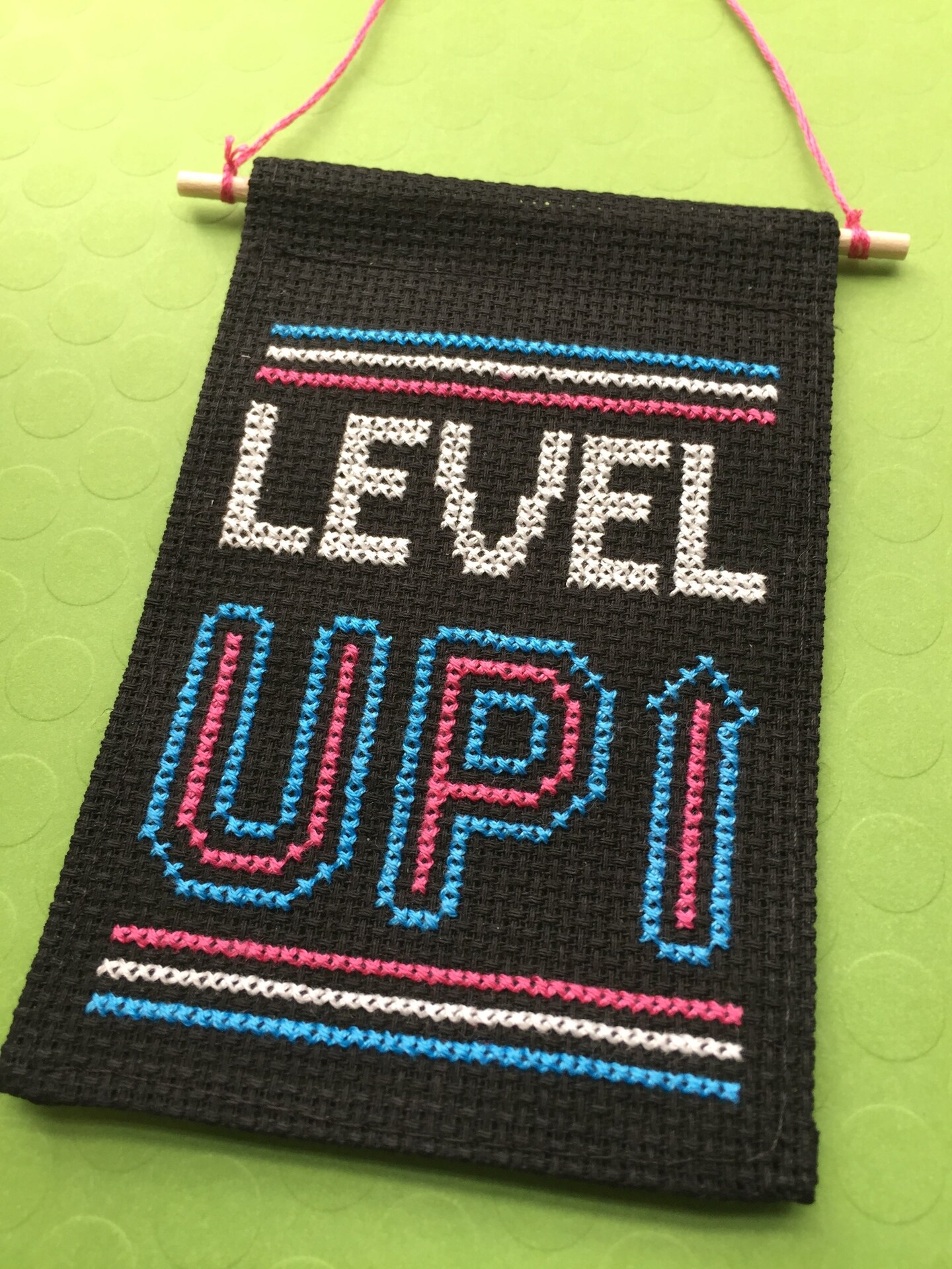 Level Up Tiny Banner Counted Cross Stitch Kit