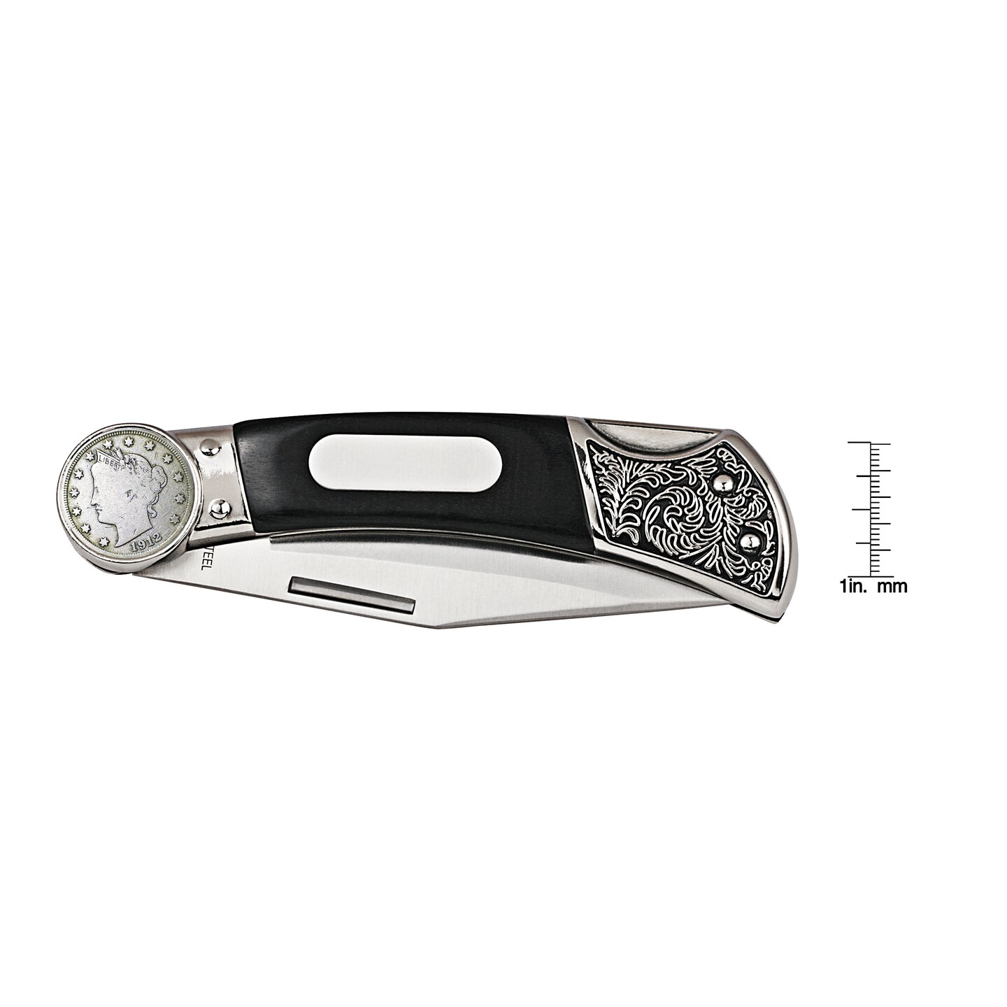 Liberty Nickel Wood Pocket Knife With Engravable Plate