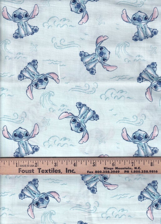 Licensed Disney Prints - Stitch Sketch Waves Light Blue Cotton Fabric by the Yard