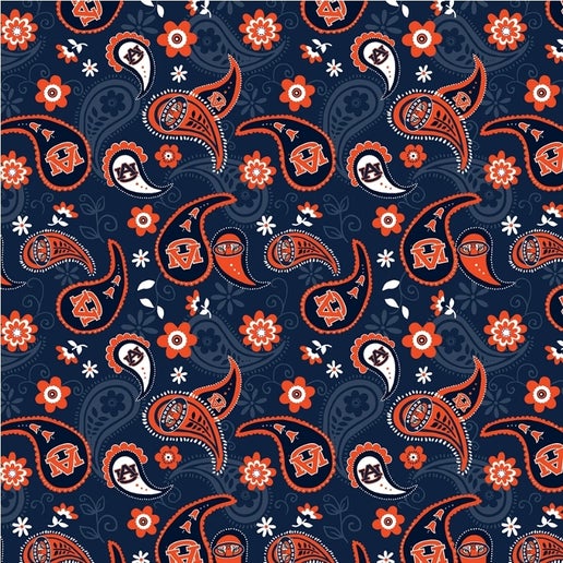Licensed NCAA Auburn University Paisley AU-1200 Cotton Fabric by the Yard