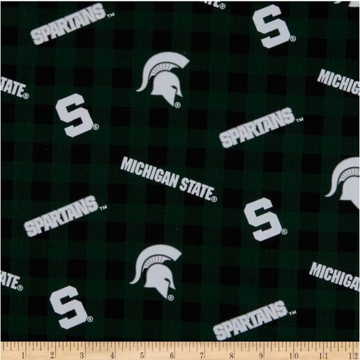 Licensed NCAA Michigan State University Buffalo Plaid MIST-1207 Cotton Fabric by the Yard
