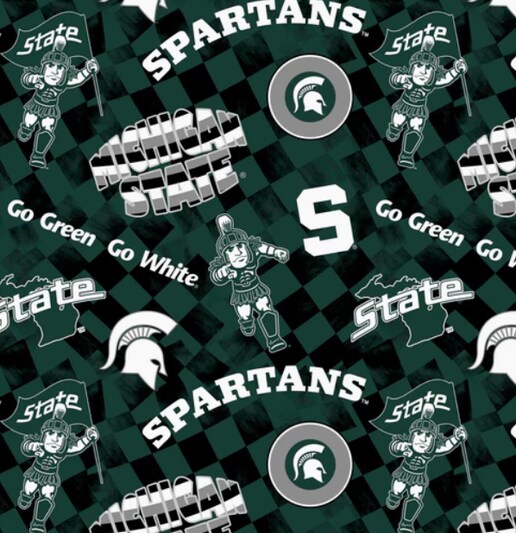 Licensed NCAA Michigan State University Check Allover Cotton Fabric by the Yard