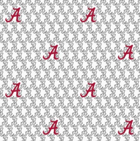Licensed NCAA University of Alabama Block Letter Cotton AL1328 Cotton Fabric by the Yard