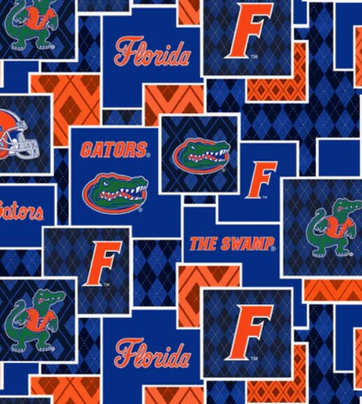Licensed NCAA University of Florida Argyle Boxes Cotton Fabric by the Yard