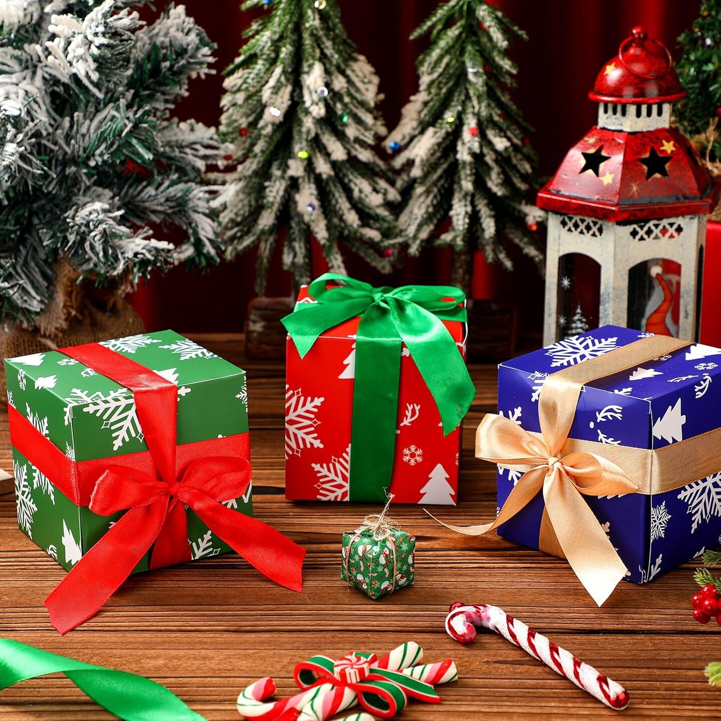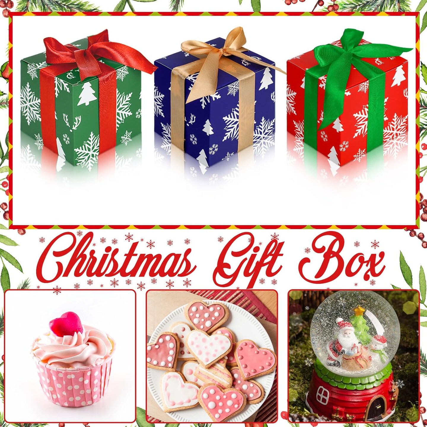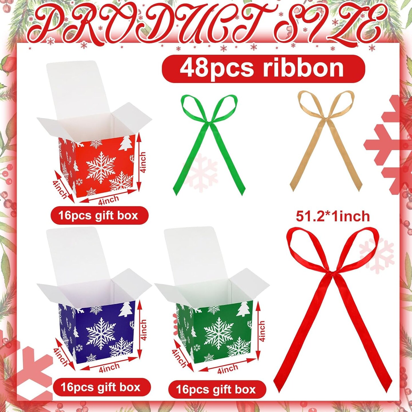 Lids Small Squared Boxes with Ribbon Bow 4x4x4 Inch Holiday Gift Boxes Snowflake Christmas Tree Deer Horn Small Gift Boxes for Christmas Holiday Party