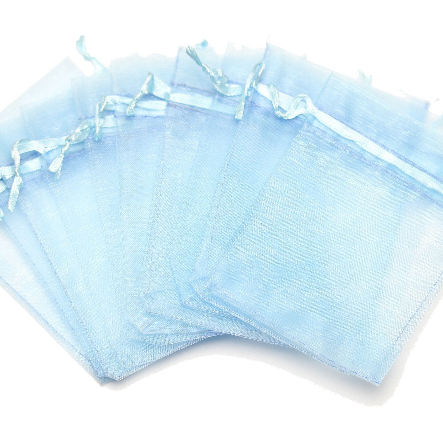 Light Aqua Chiffon Bags 3.5x4.5 inches with drawstring closure