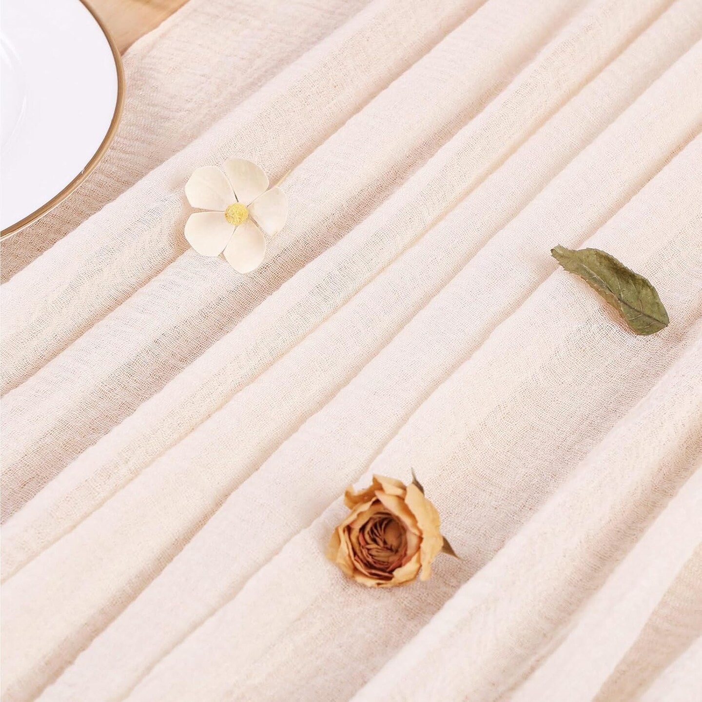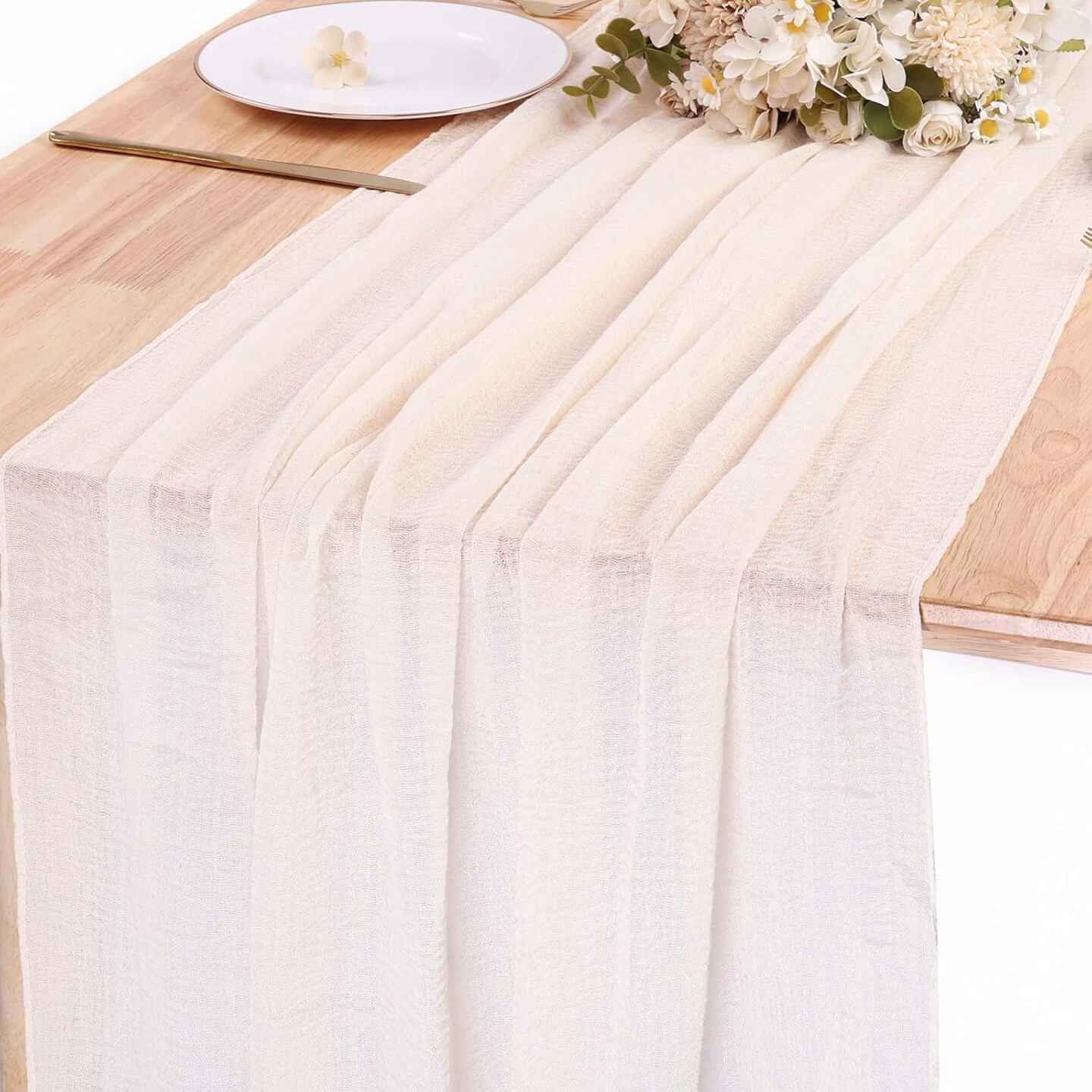 Light Beige Cheesecloth Table Runner 10ft Boho Gauze Sheer Table Runner(Light Beige)157"L x 35.4"W