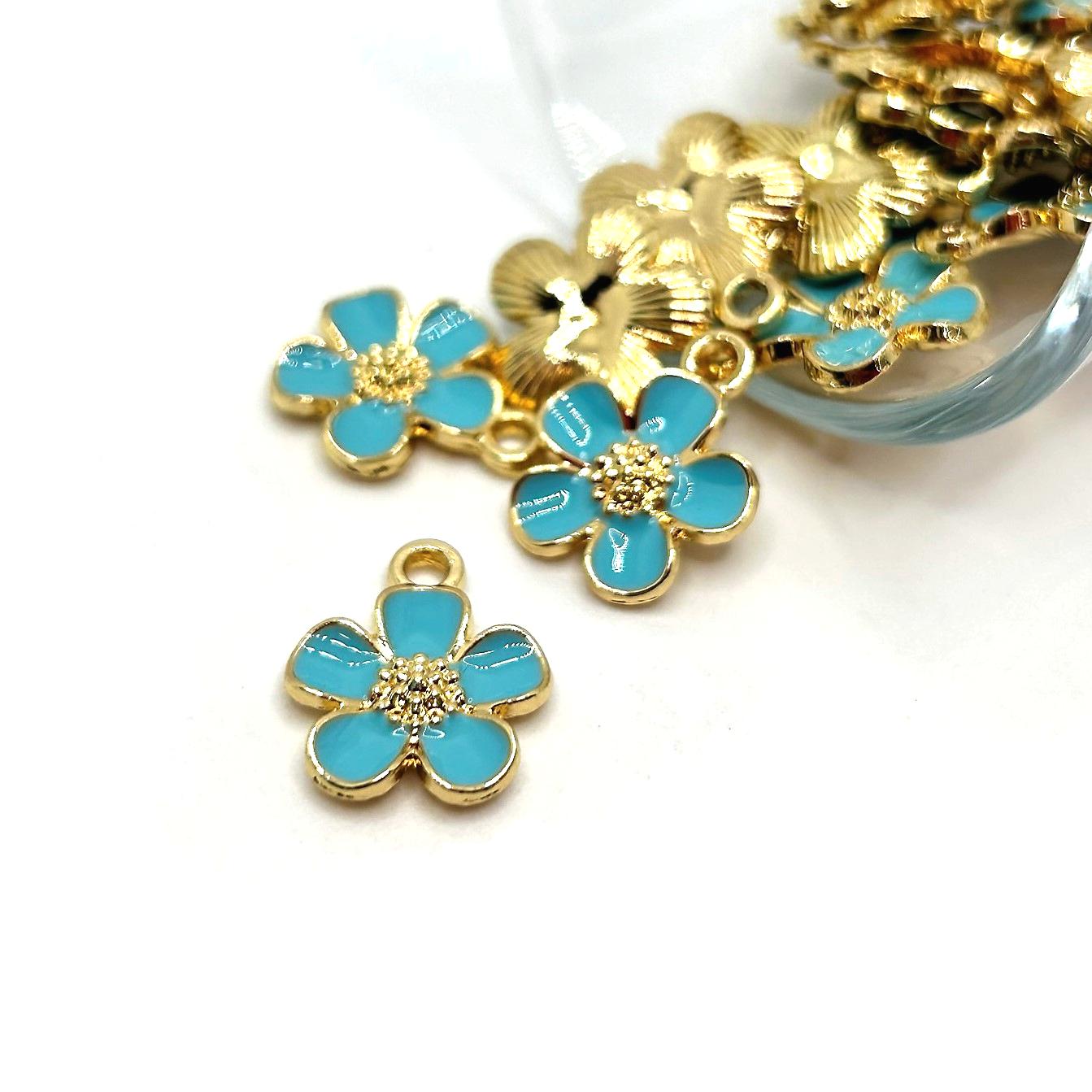 Light Blue and Gold Flower Charms, 16x13mm