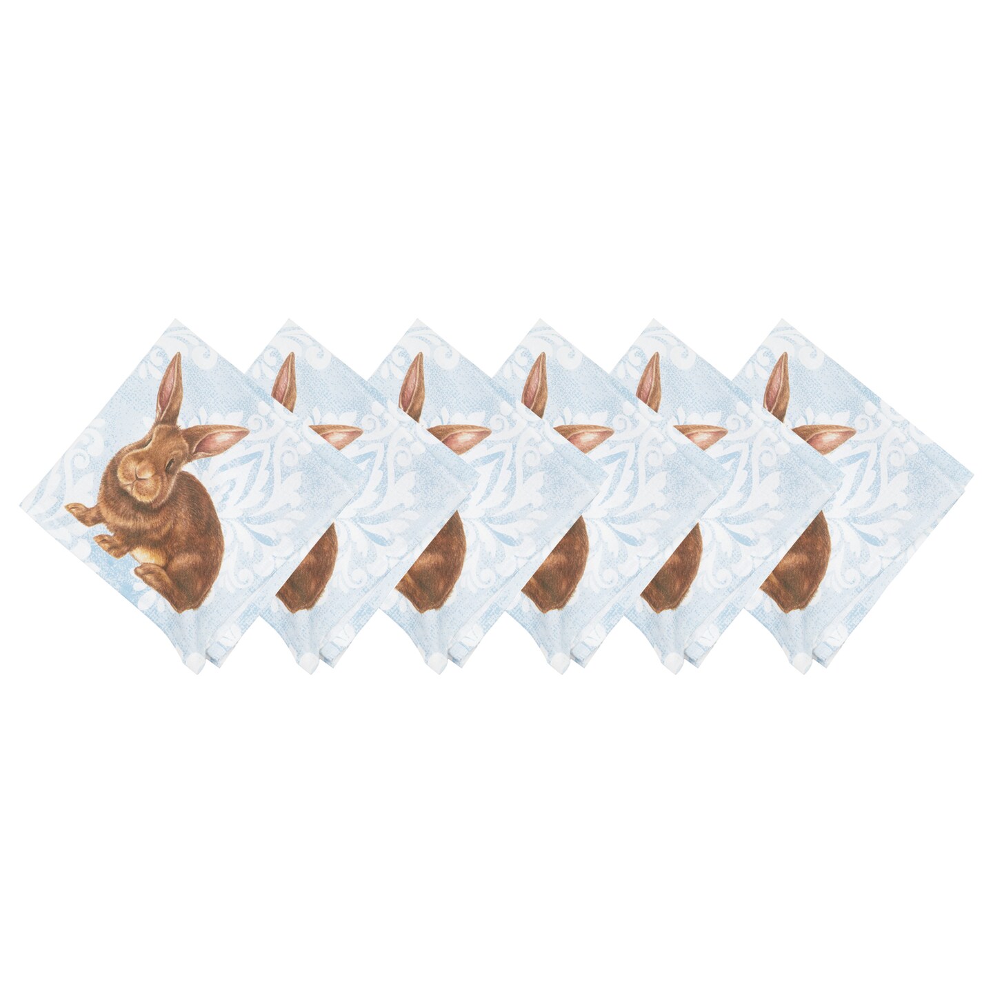 Light Blue Damask Easter Bunny 100% Cotton Set of 6 Cloth Napkins