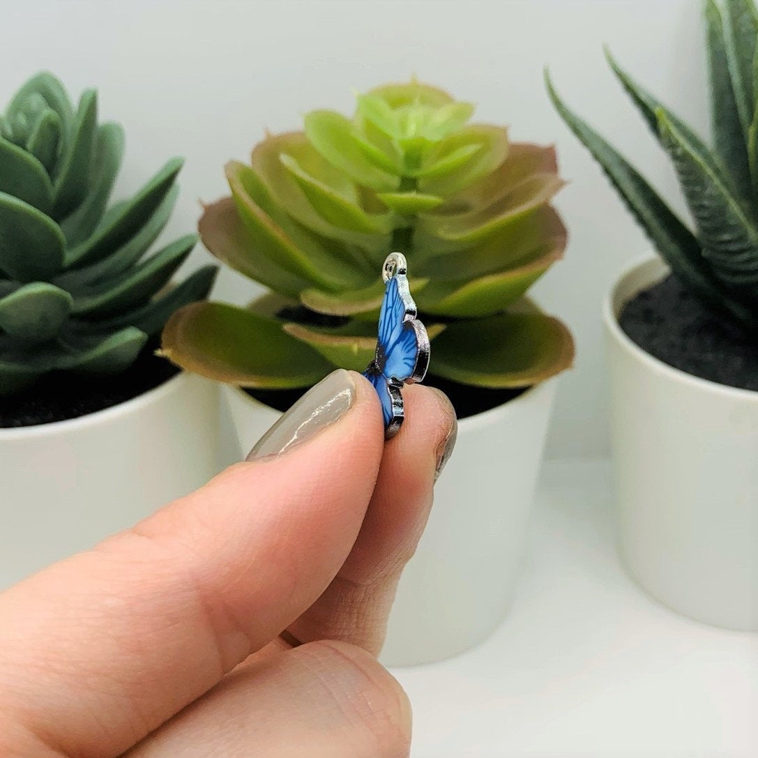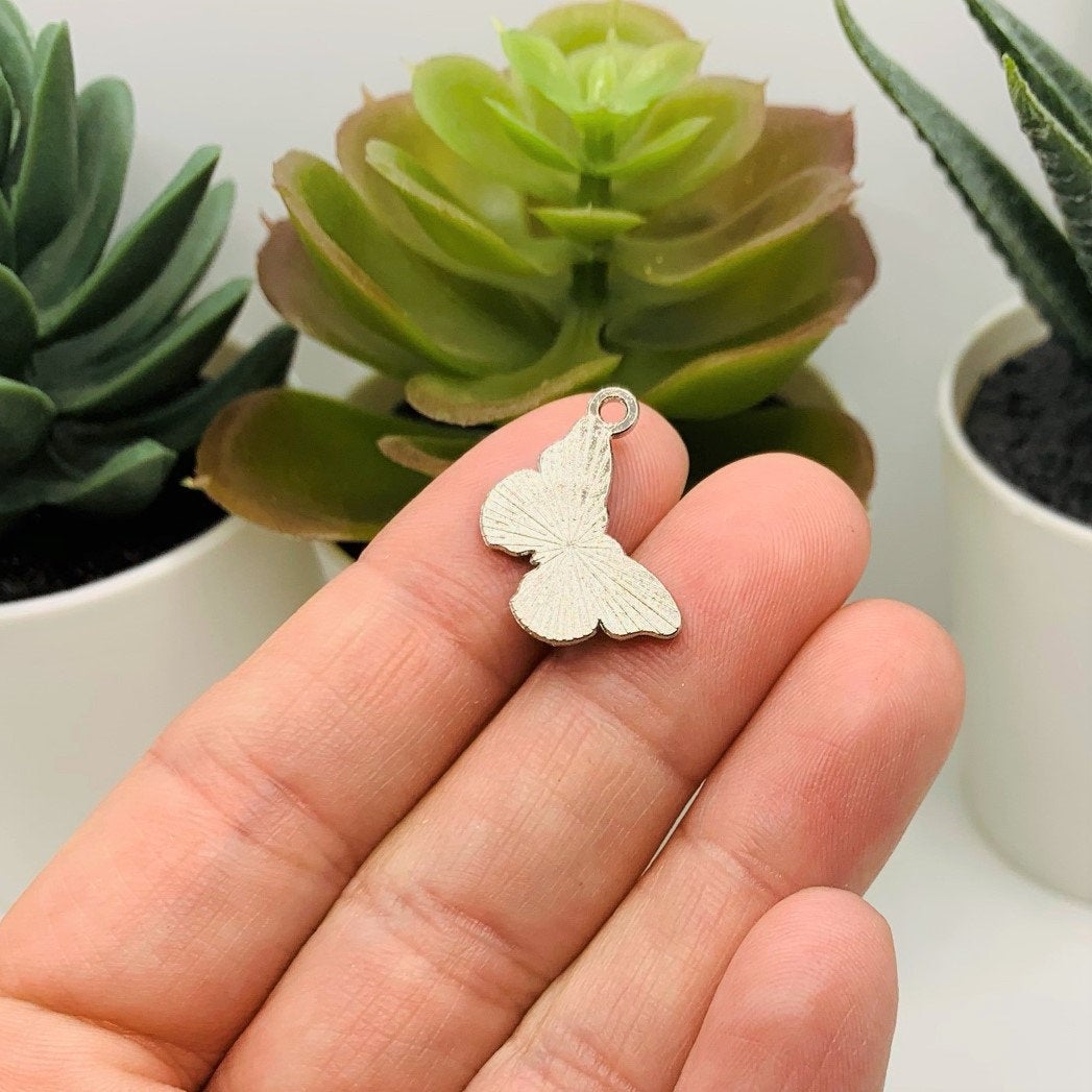 Light Blue Enamel and Silver Butterfly Charms, 14x20mm