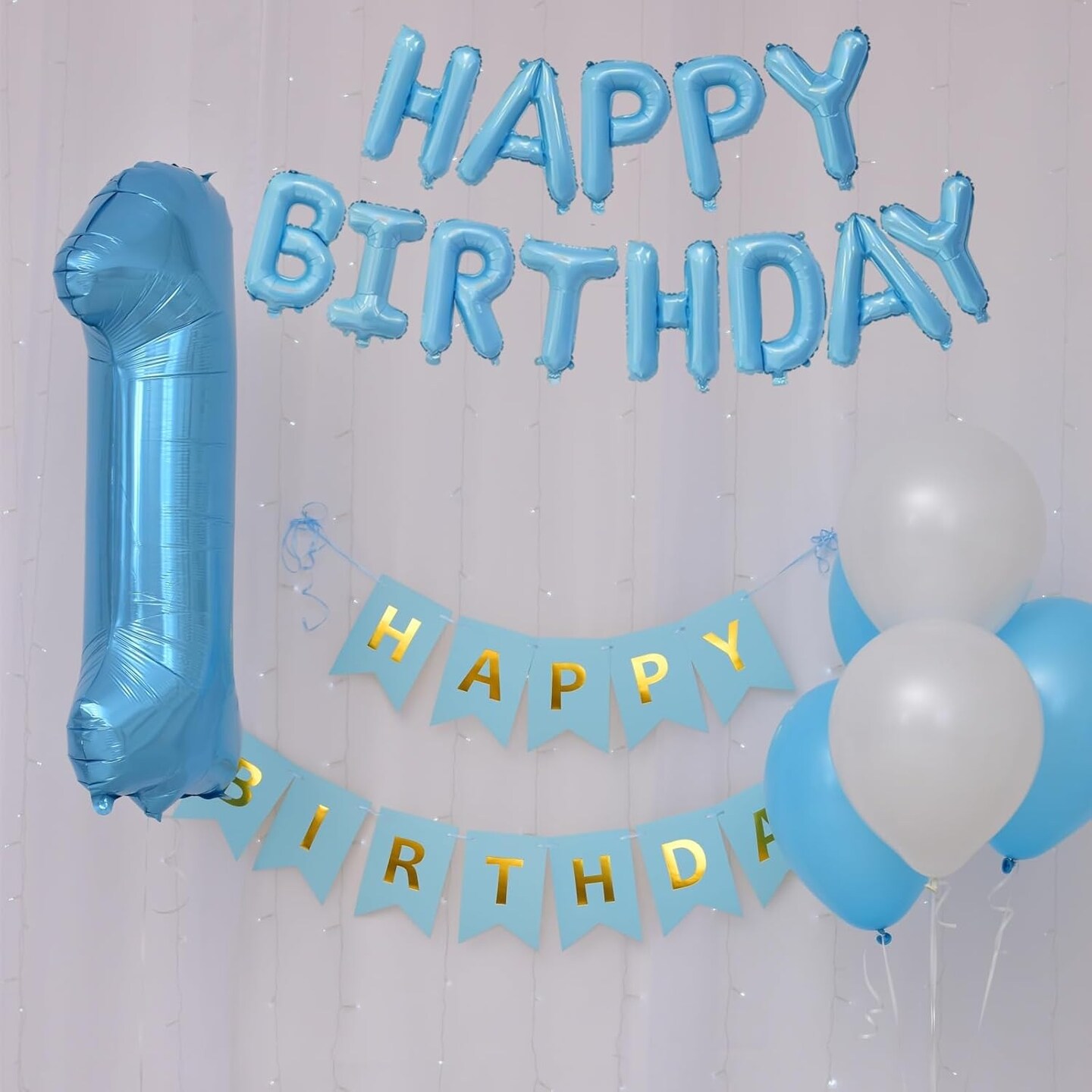 Light Blue Happy Birthday Balloon Banner – 16-Inch Foil Letters, Reusable Birthday Decoration for Boys, Girls, Kids, Women, and Men (Light Blue)