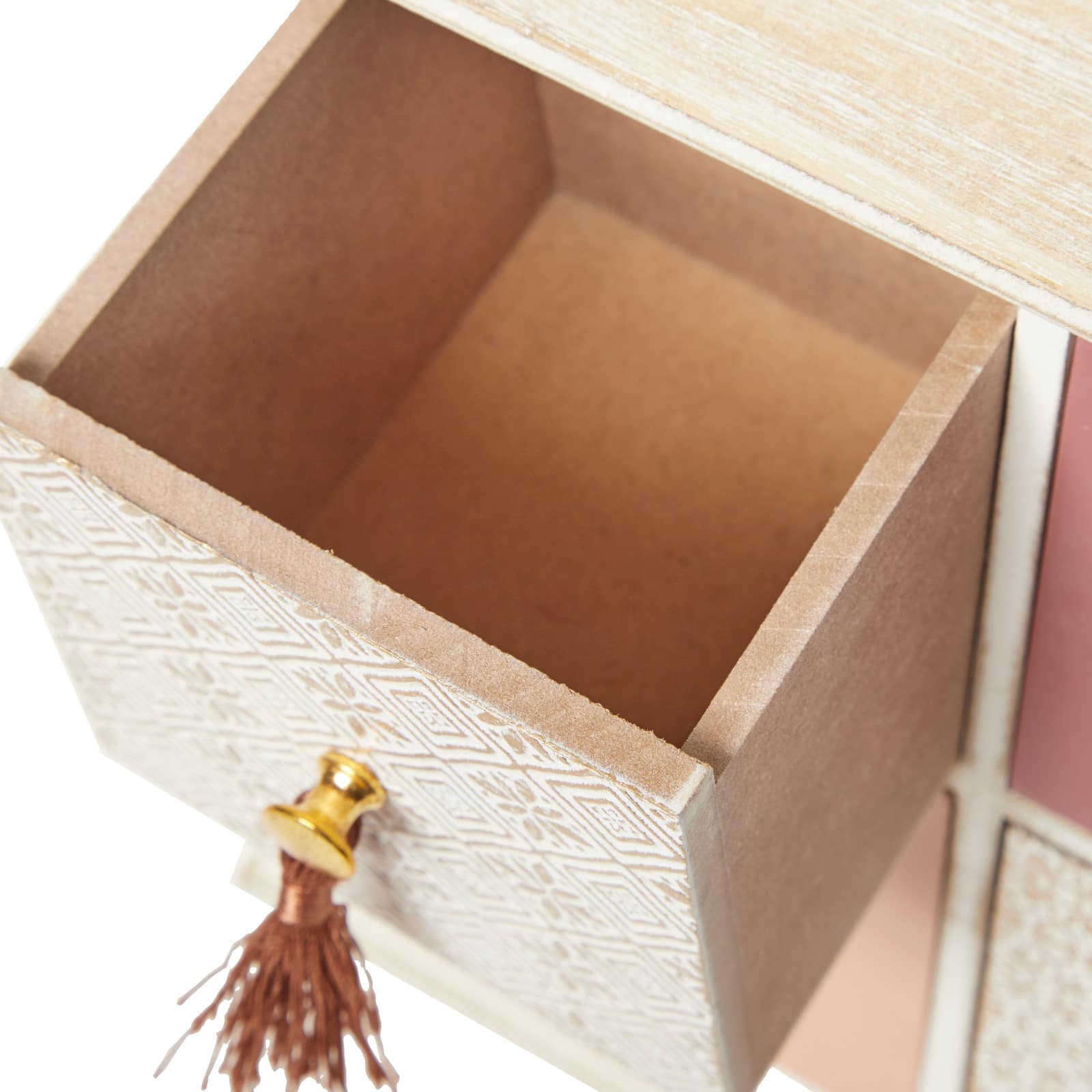 Light Brown Linen & Wood Eclectic 4-Drawer Jewelry Box