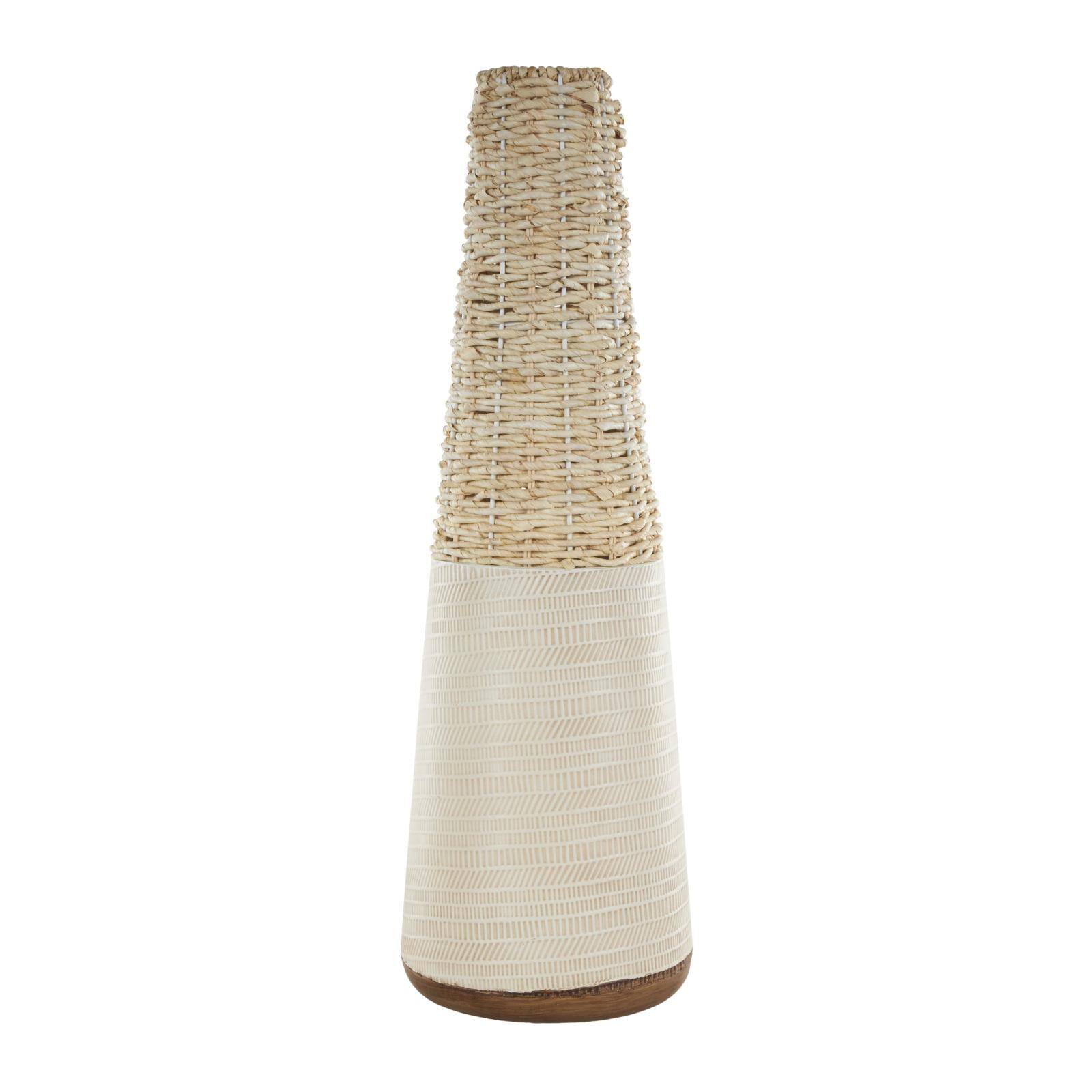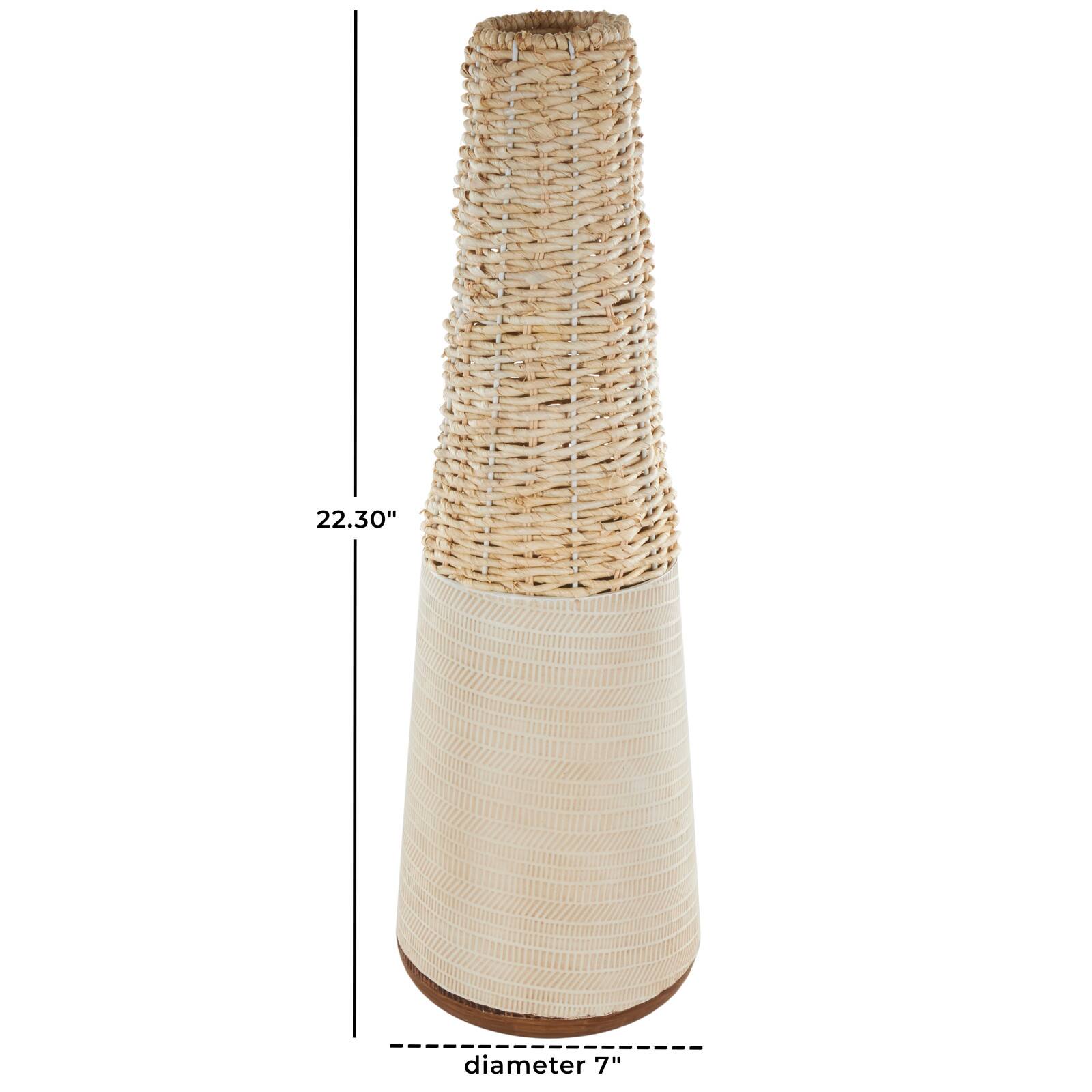 Light Brown Rattan Handmade Woven Vase with Beige Metal Base