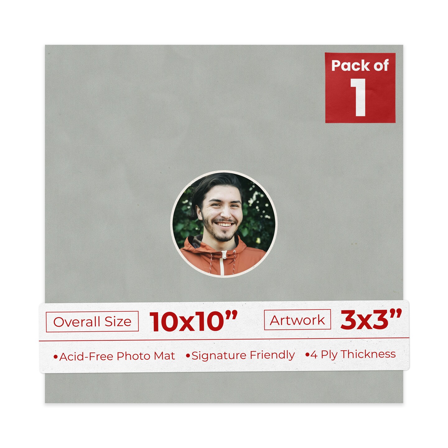 Light Grey Suede Mat Board for 10x10 Frames - Circle Opening for 3x3 Photos