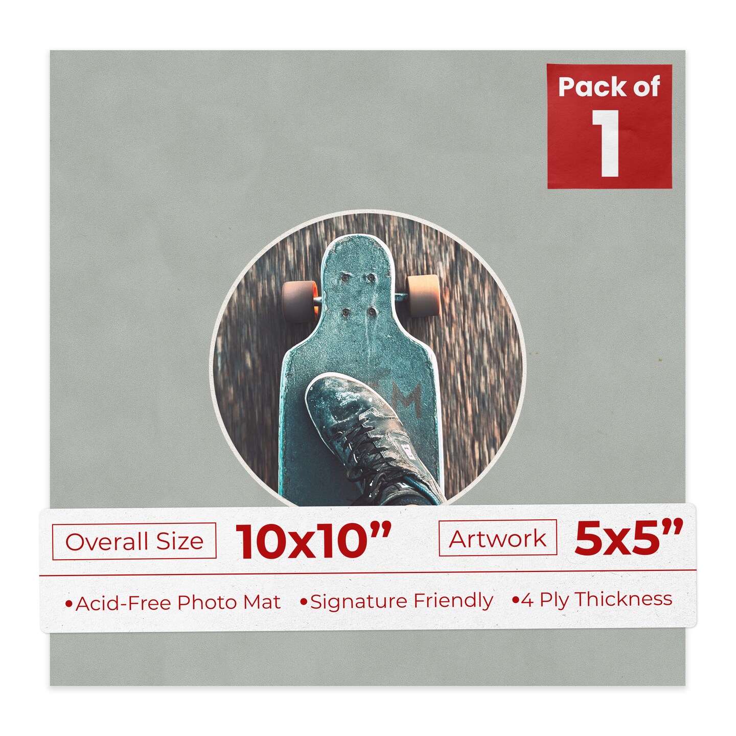Light Grey Suede Mat Board for 10x10 Frames - Circle Opening for 5x5 Photos