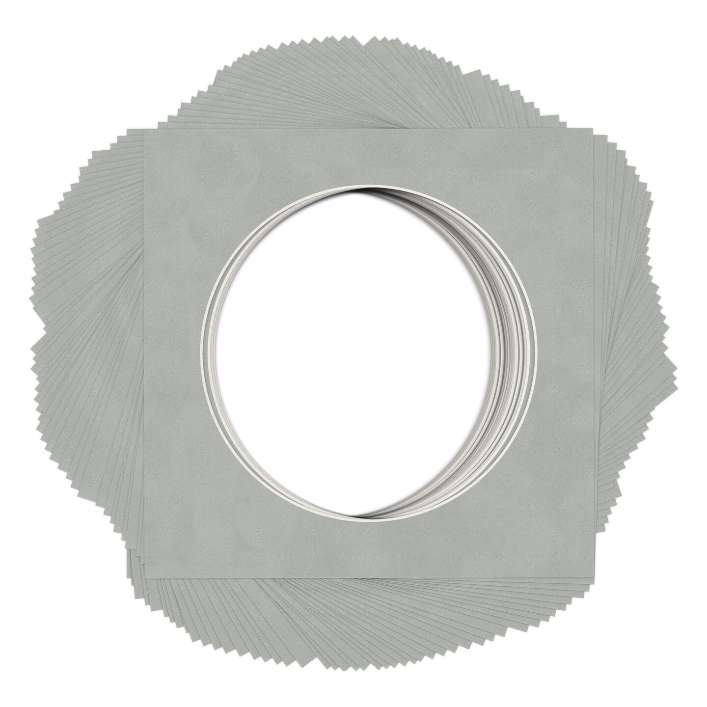 Light Grey Suede Mat Board for 10x10 Frames - Circle Opening for 8x8 Photos